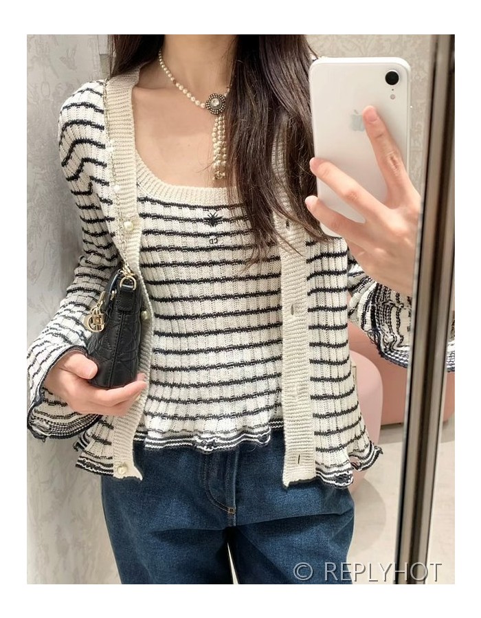 디올 스트라이프 가디건