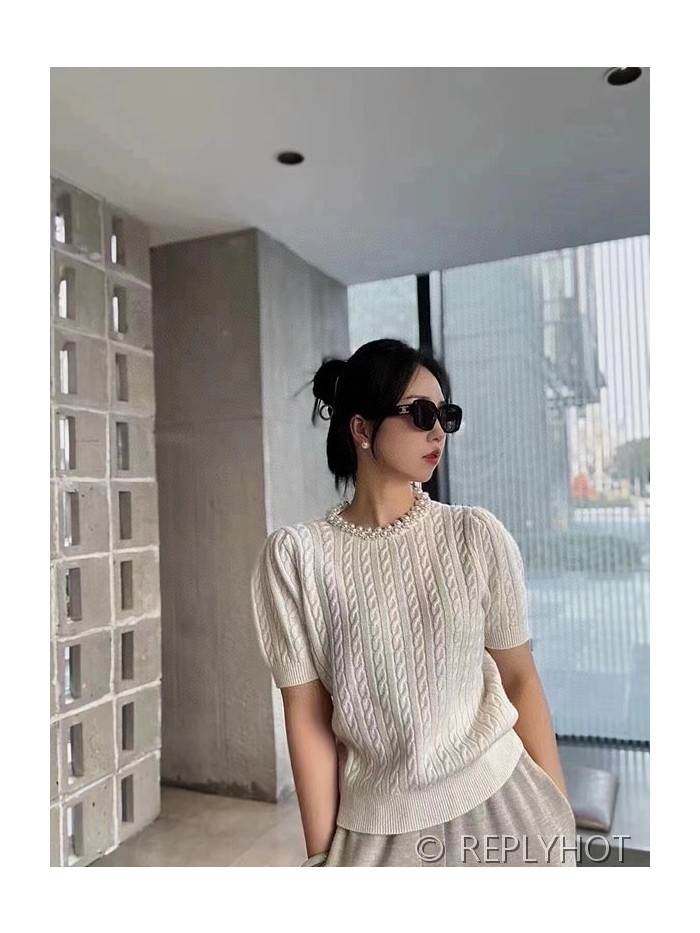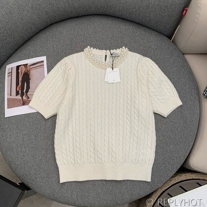 산드로 라운드 진주 반팔 니트 > 니트