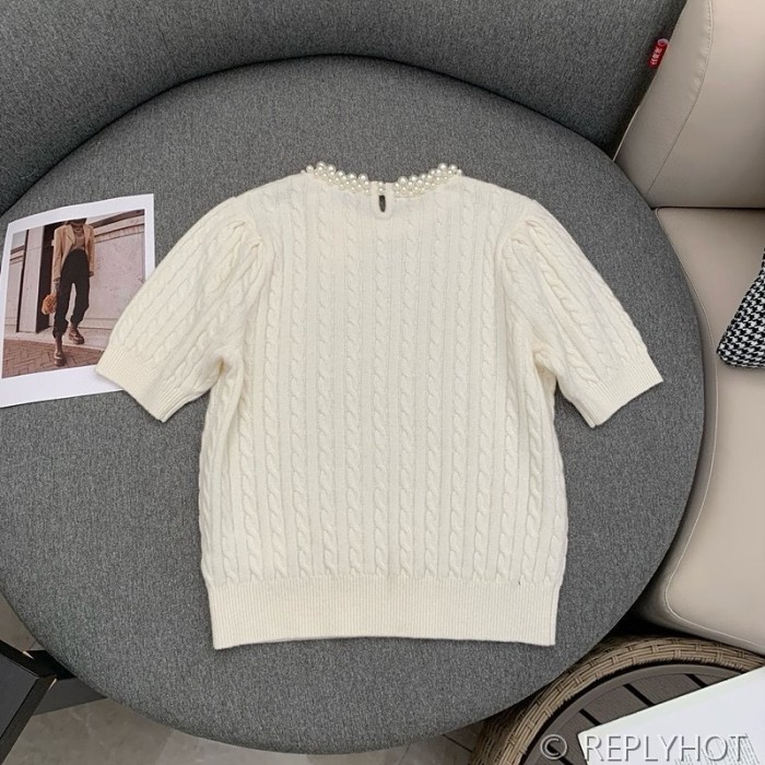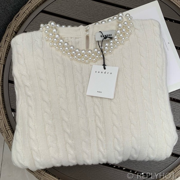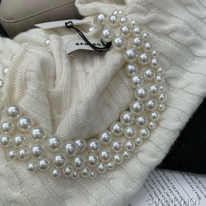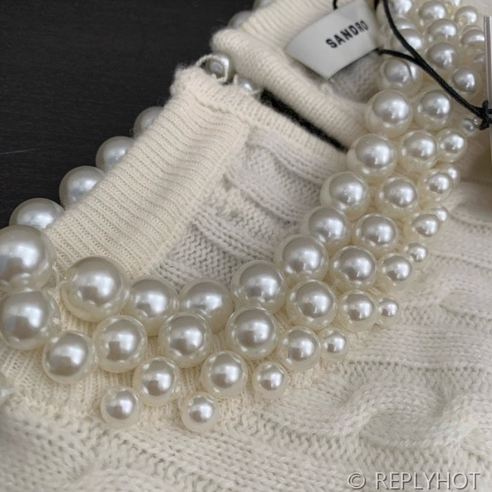 산드로 라운드 진주 반팔 니트