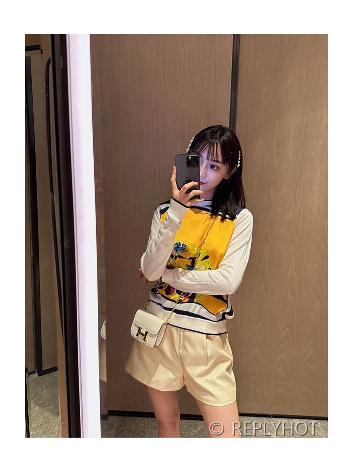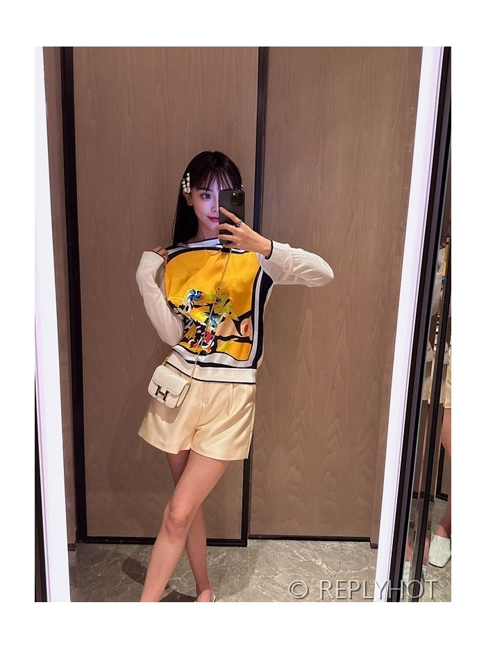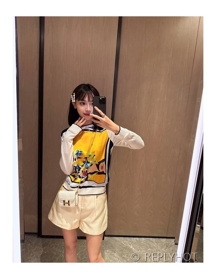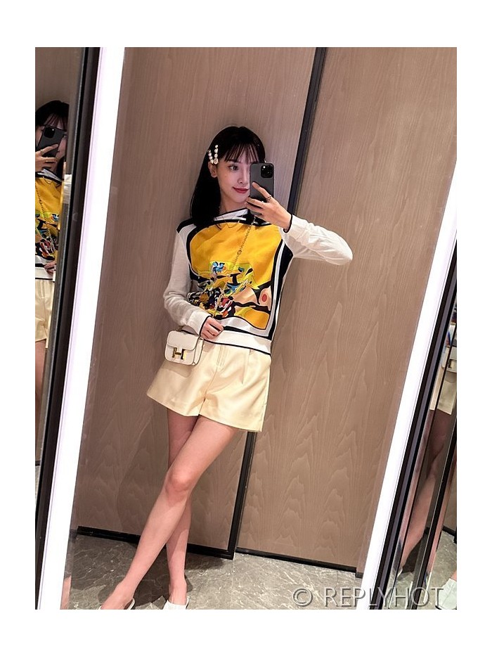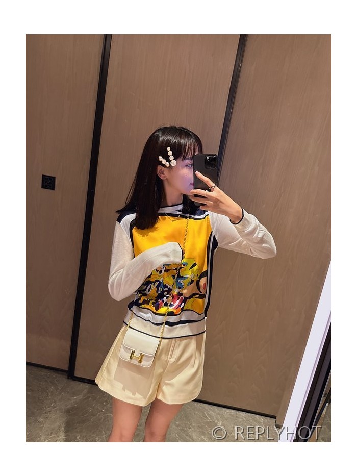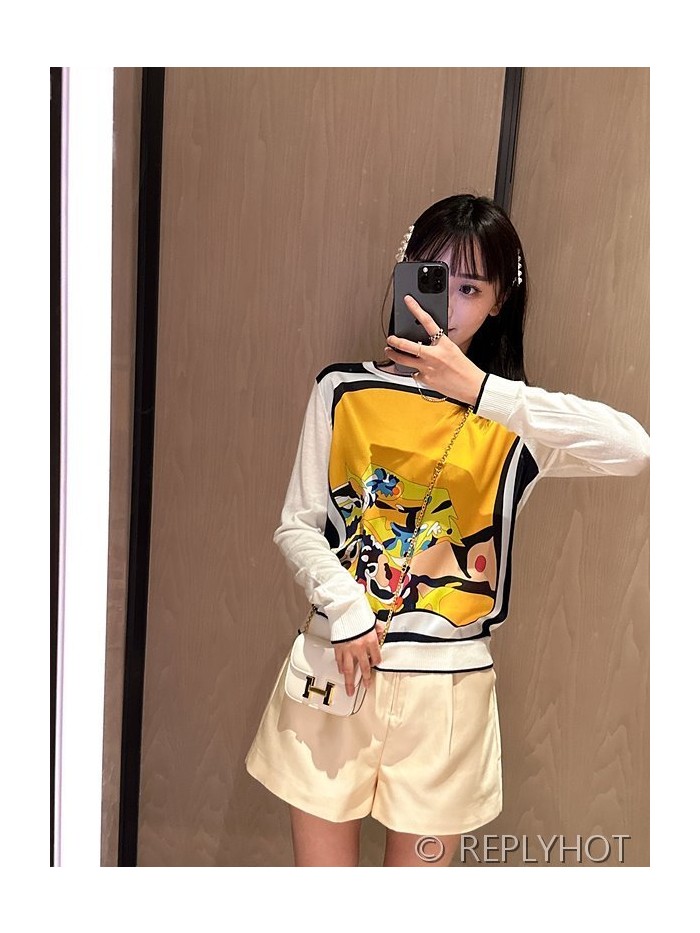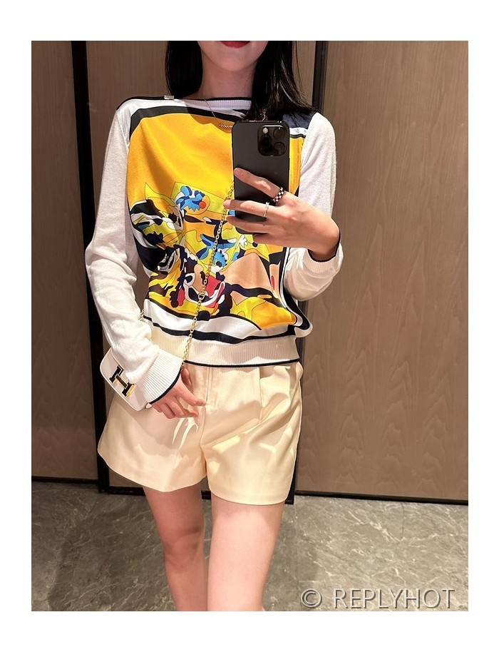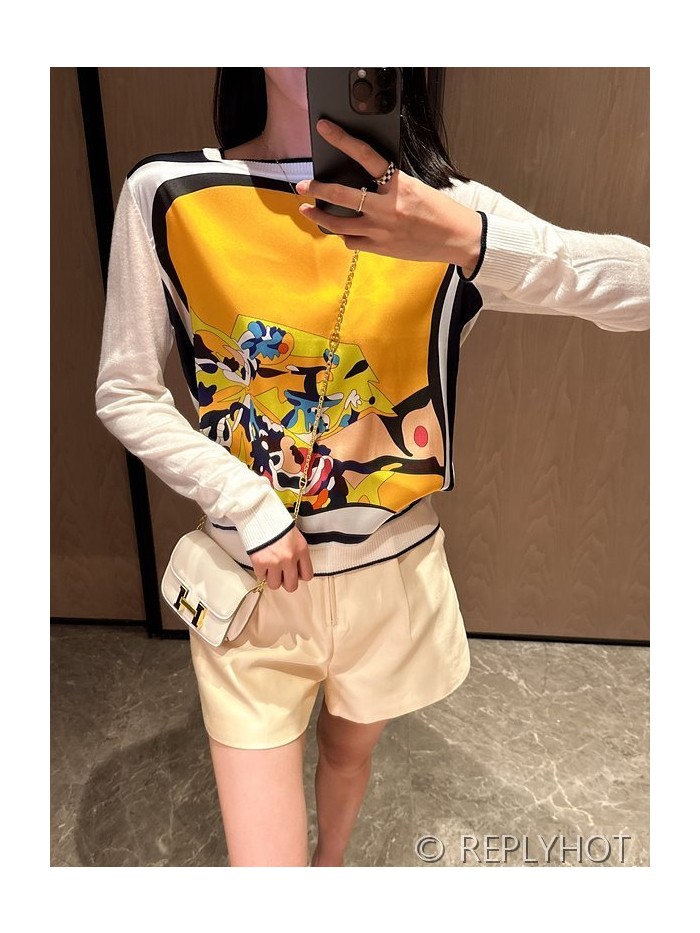 에르메스 실크100% 프린트 니트 풀오버 스웨터