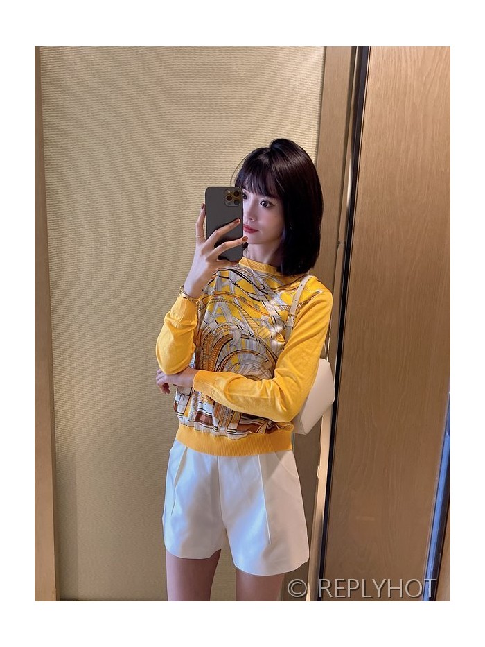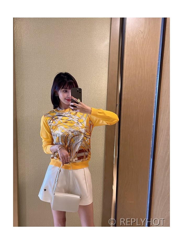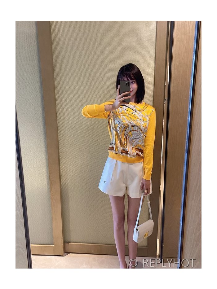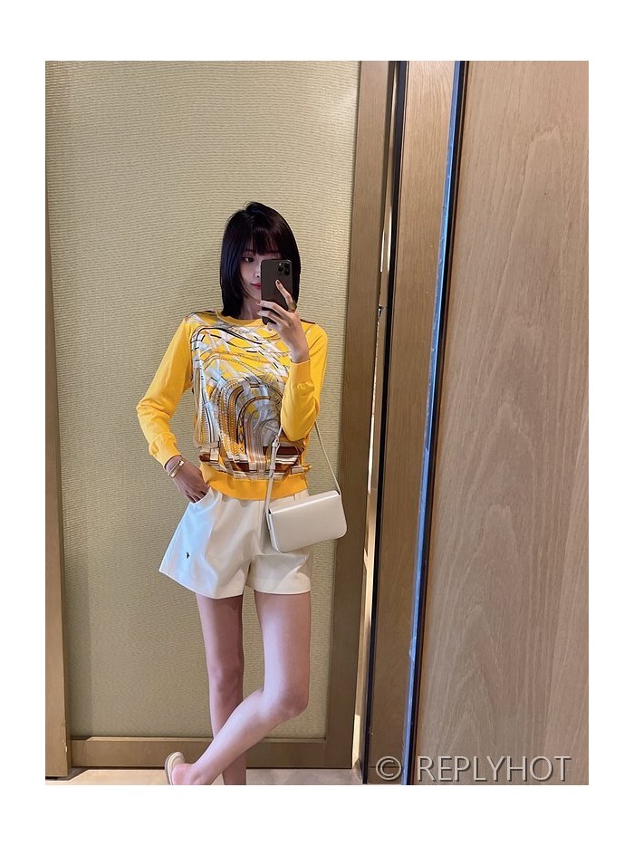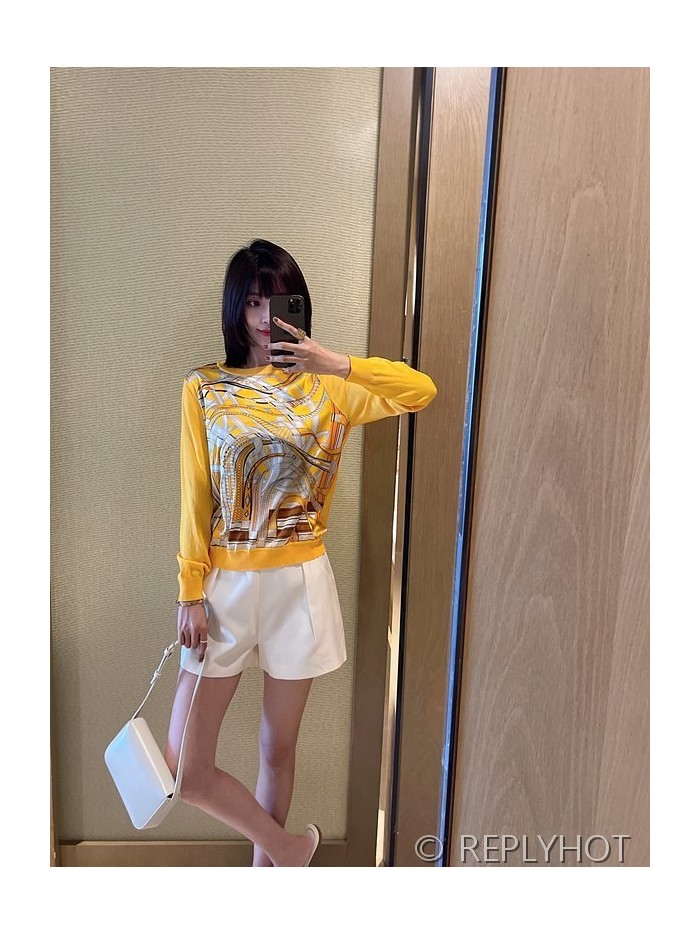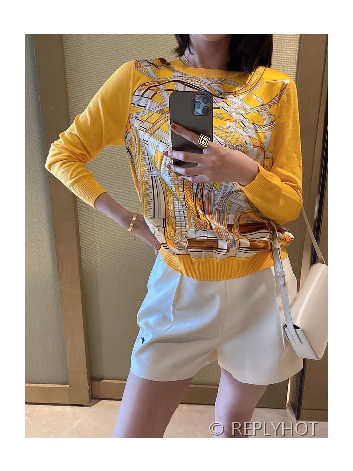에르메스 실크100% 프린트 니트 풀오버 스웨터