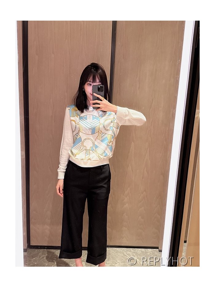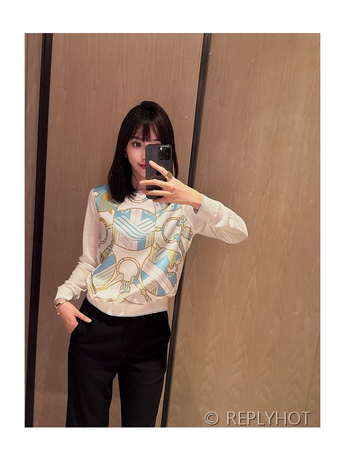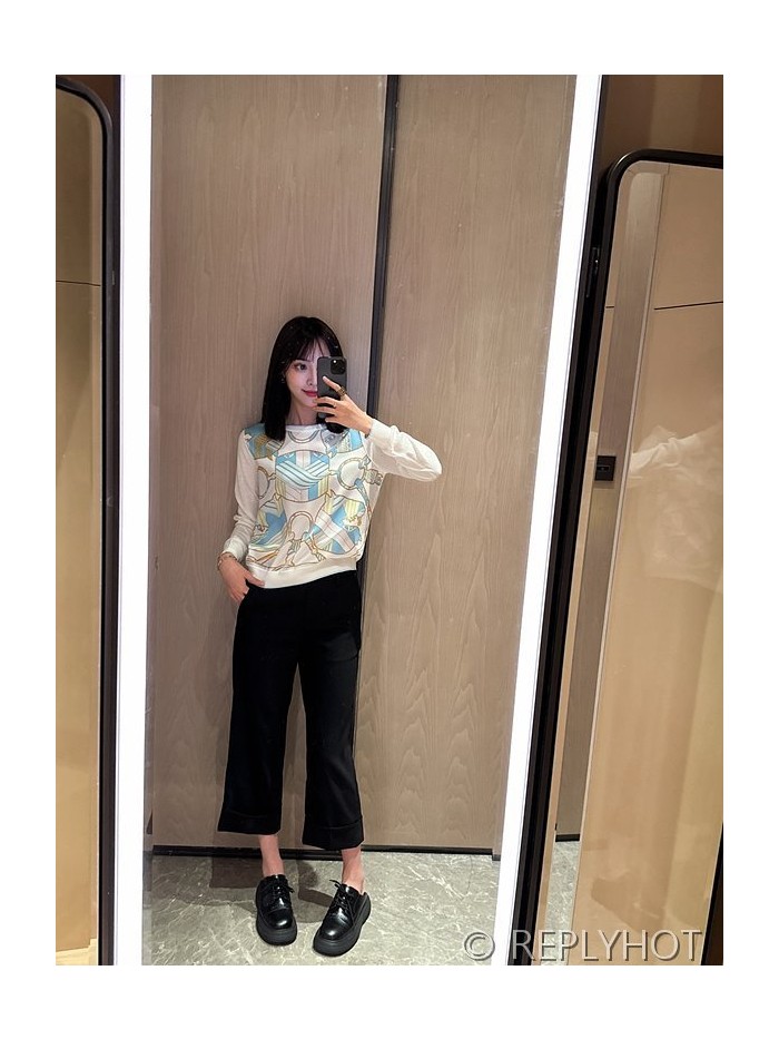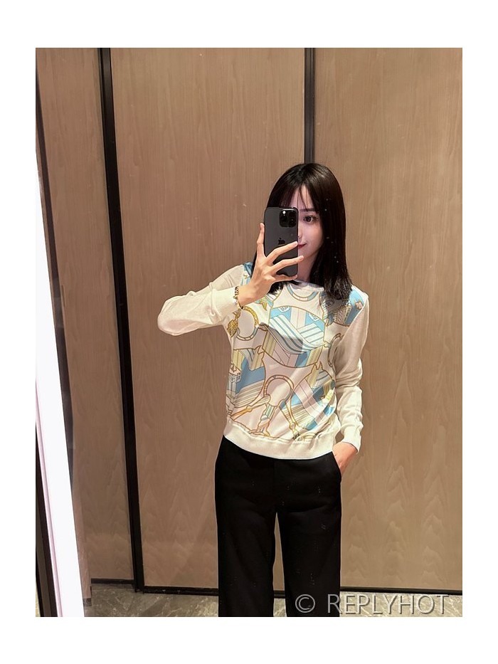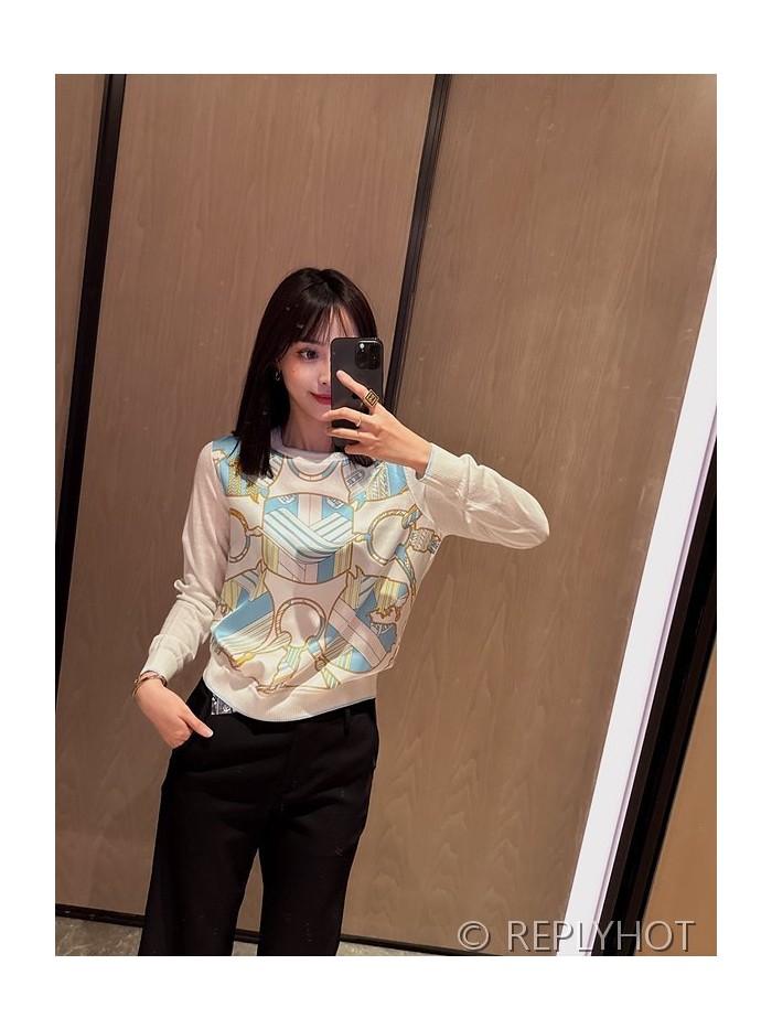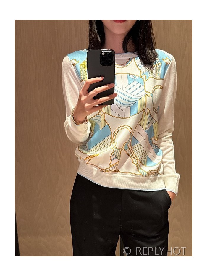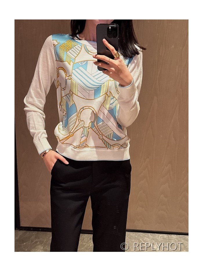 에르메스 실크100% 프린트 니트 풀오버 스웨터