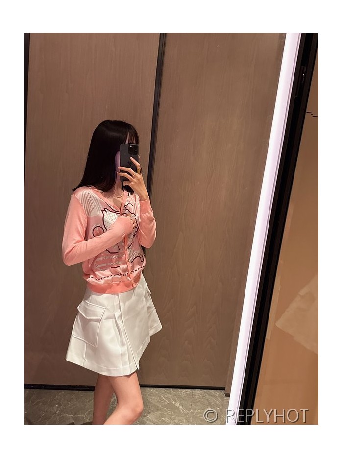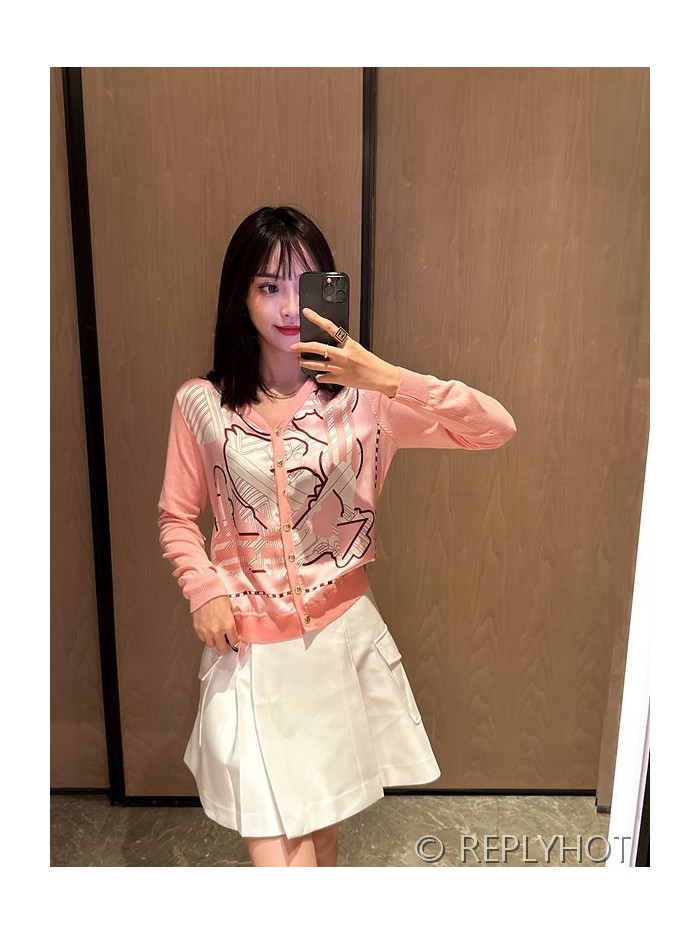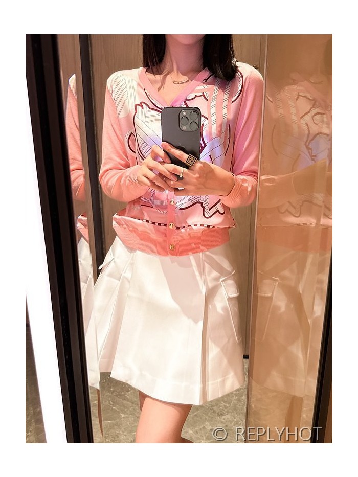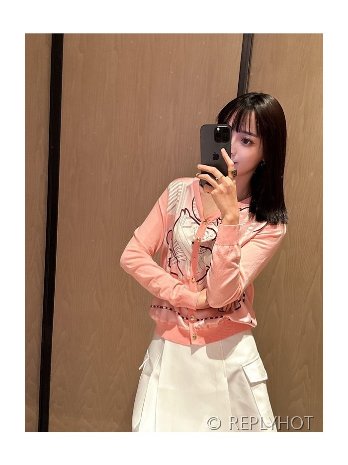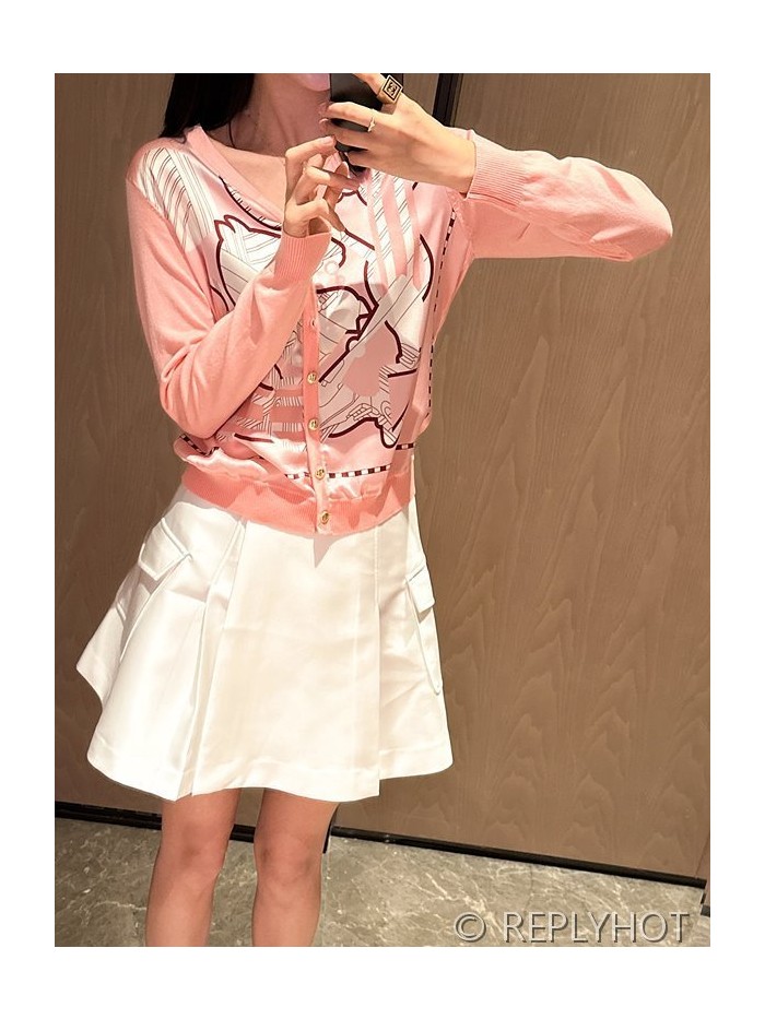 에르메스 실크100% 프린트 니트 풀오버 가디건
