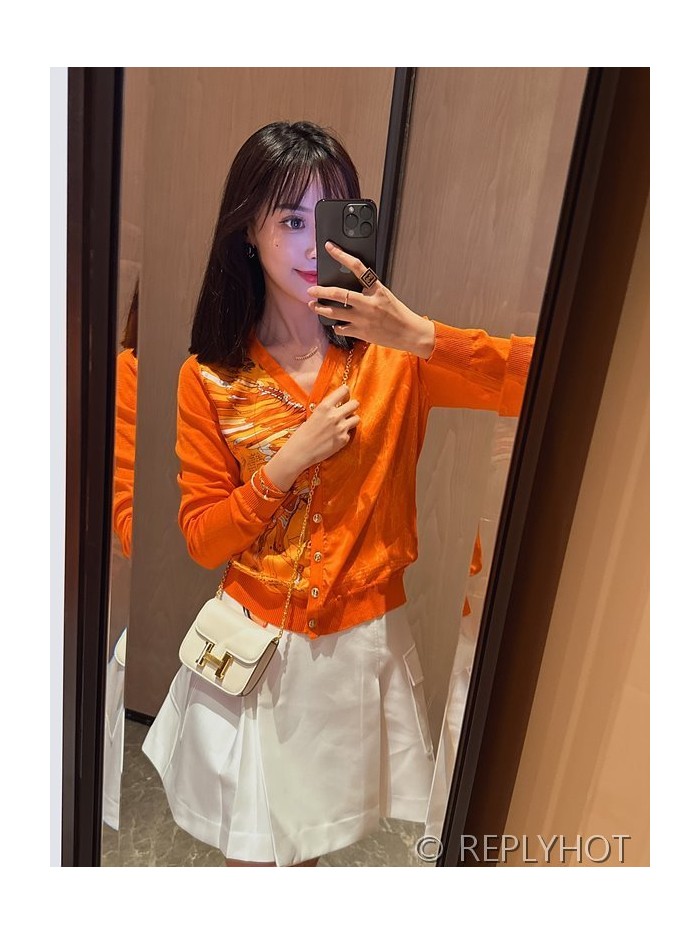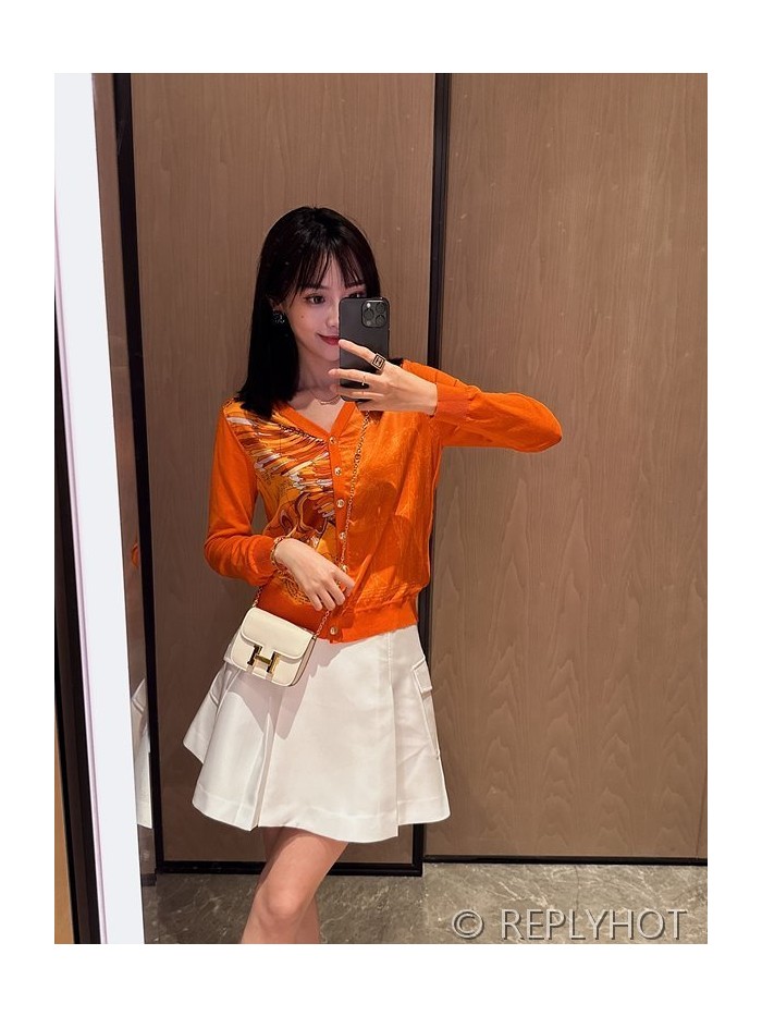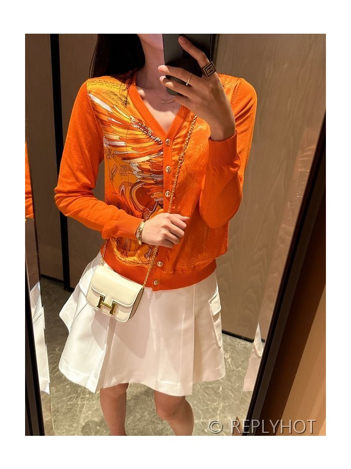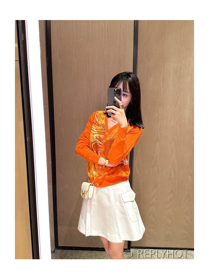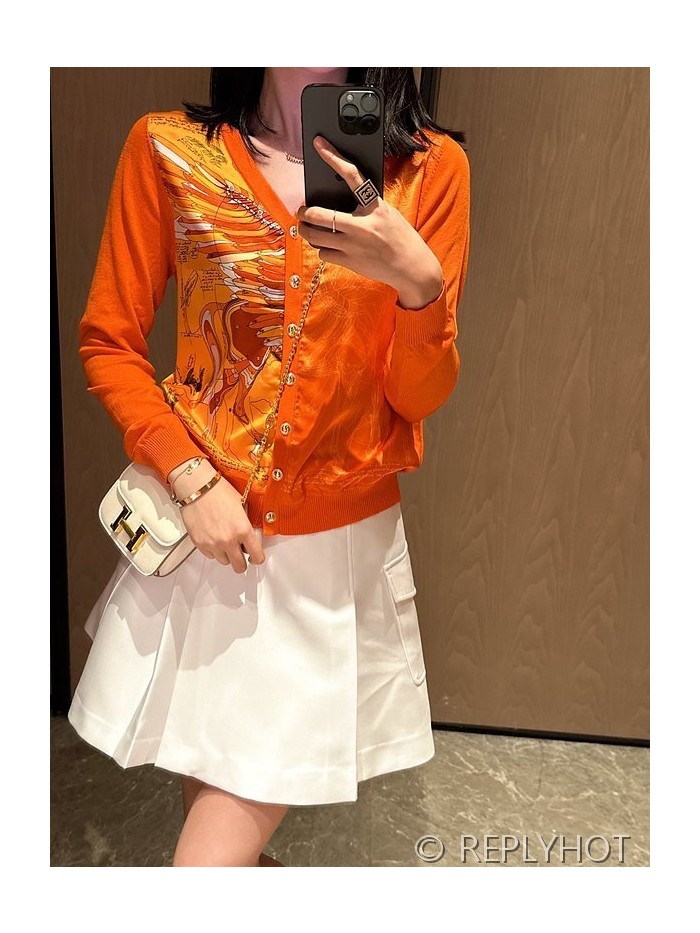 에르메스 실크100% 프린트 니트 풀오버 가디건