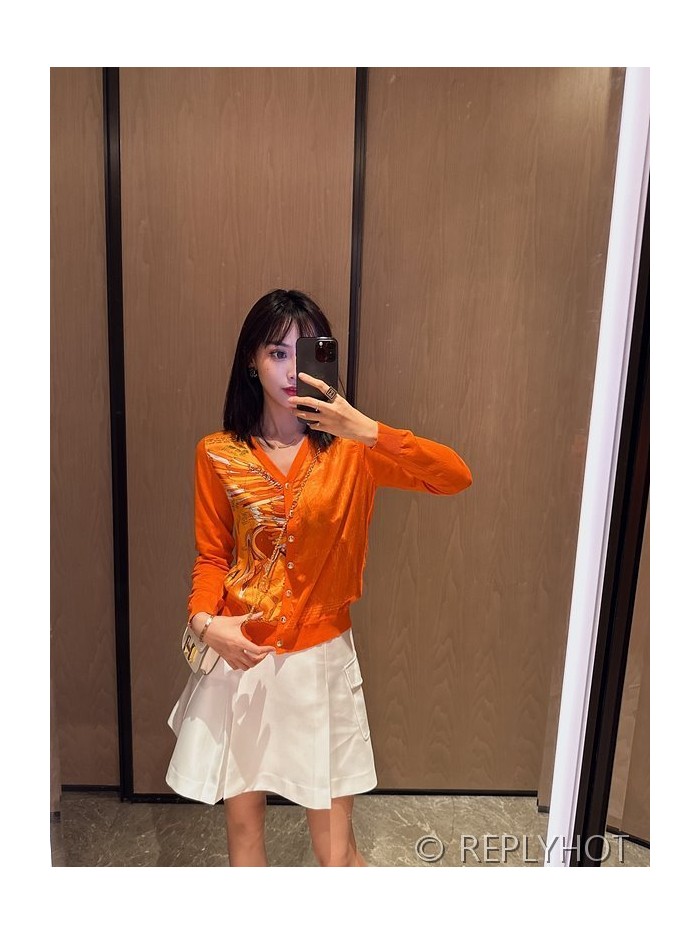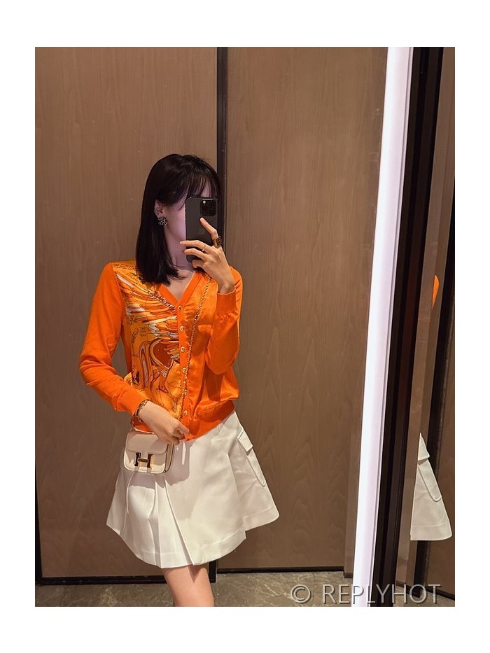 에르메스 실크100% 프린트 니트 풀오버 가디건 > 에르메스
