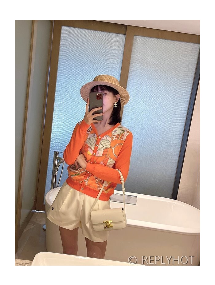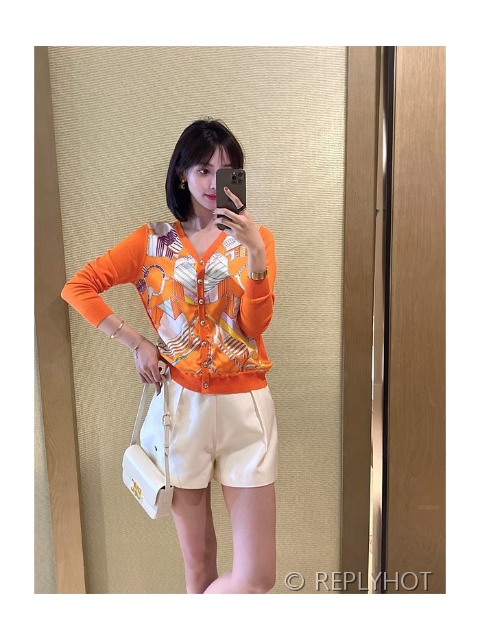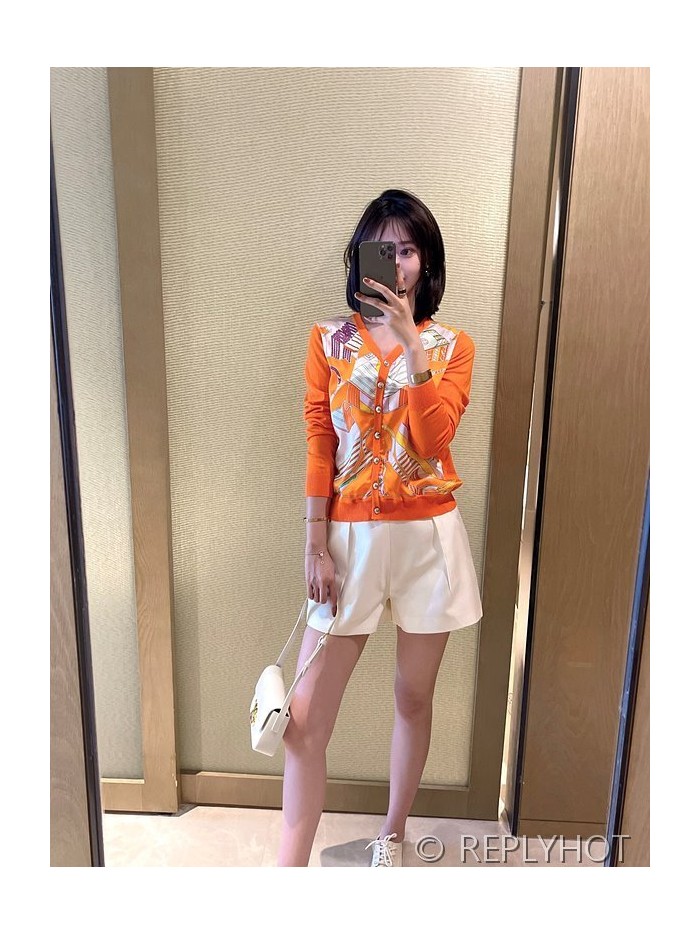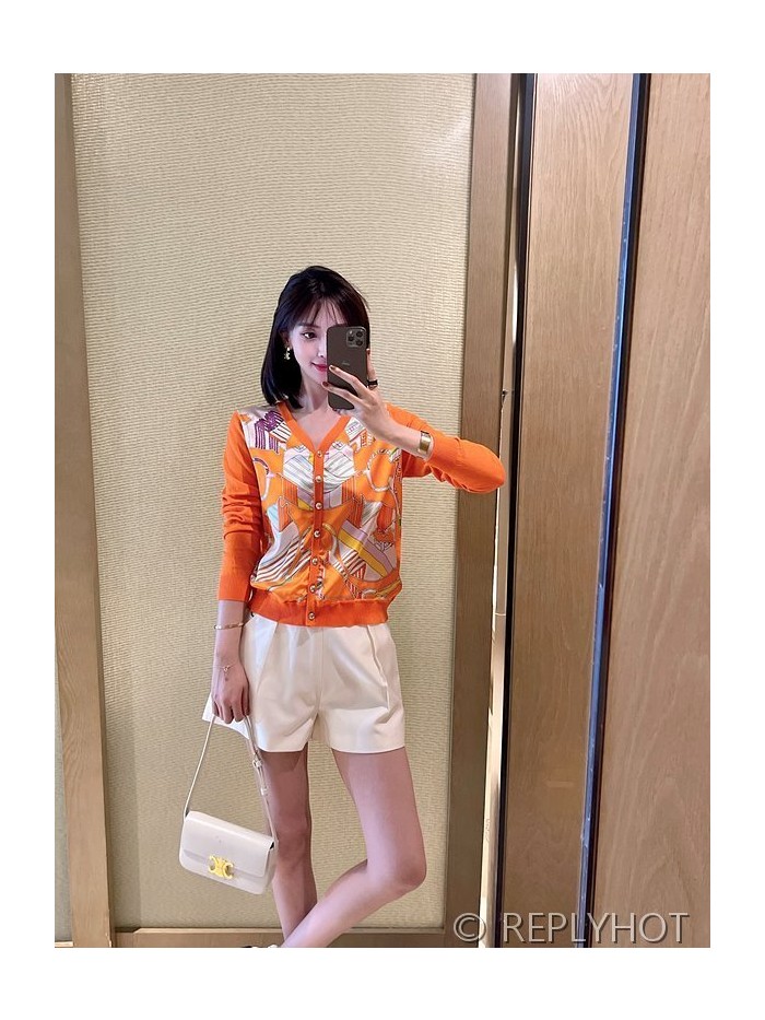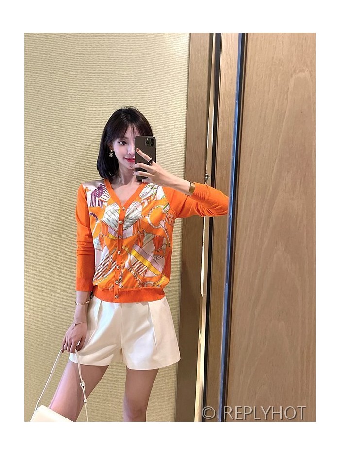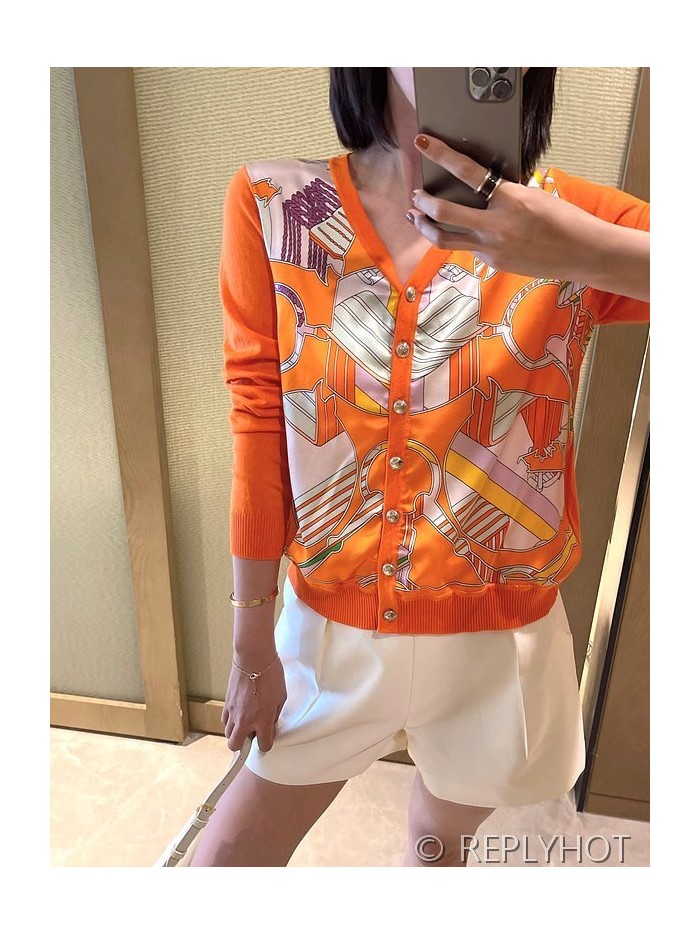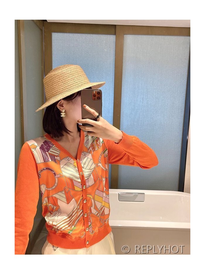 에르메스 실크100% 프린트 니트 풀오버 가디건
