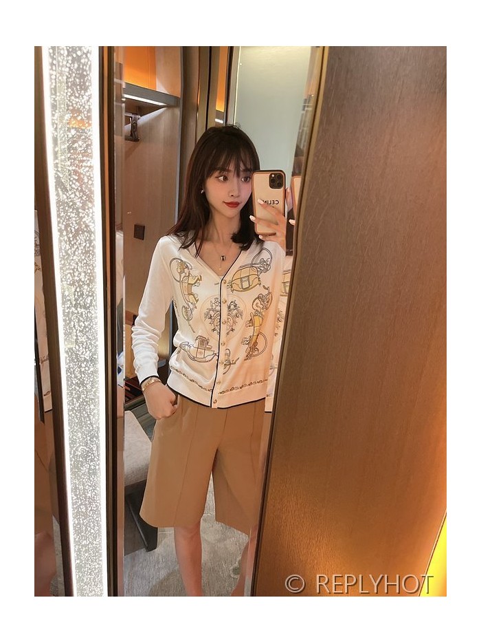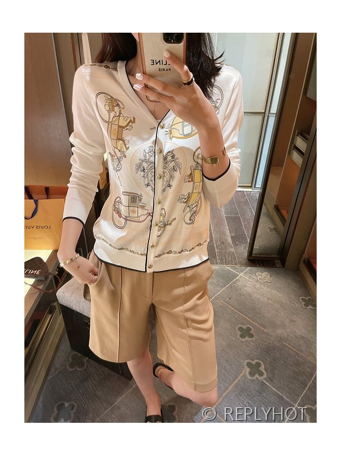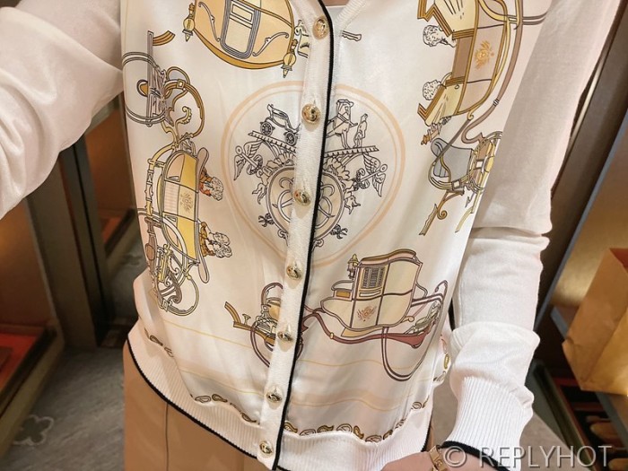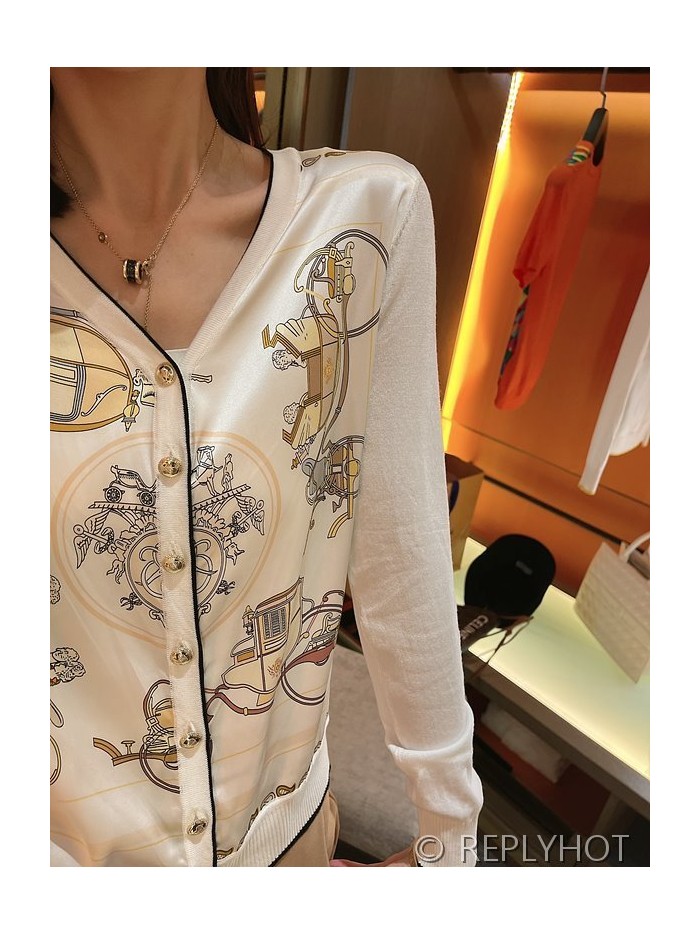 에르메스 실크100% 프린트 니트 풀오버 가디건