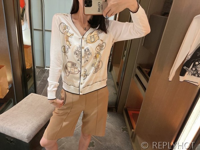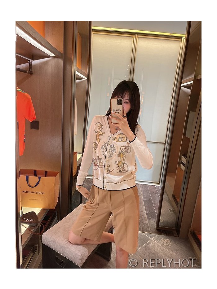 에르메스 실크100% 프린트 니트 풀오버 가디건 > 에르메스