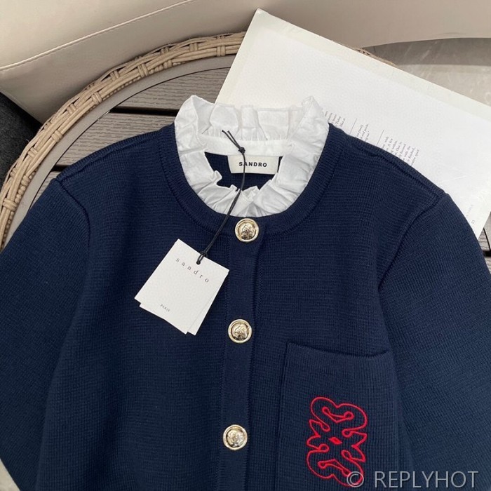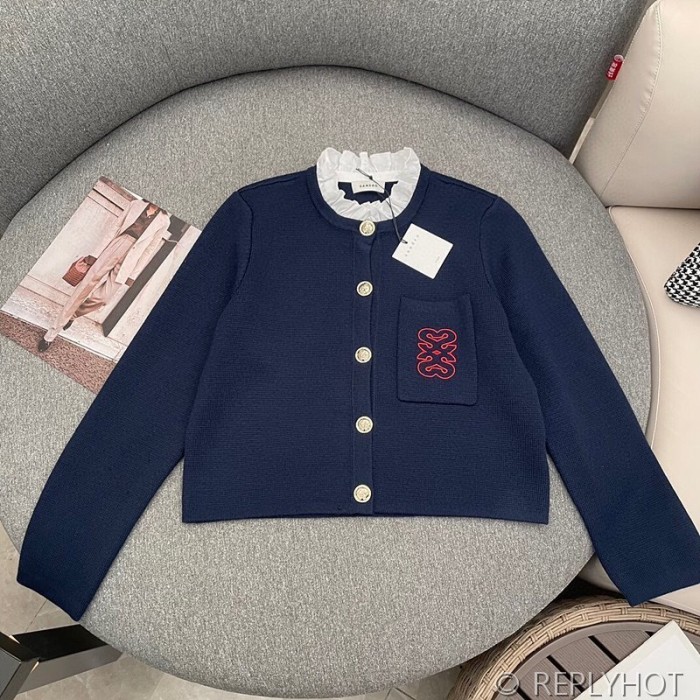 산드로 레이스 칼라 더블 S 로고 울 니트 가디건 [매장가 350만원대] > 가디건