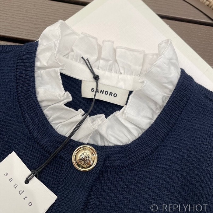 산드로 레이스 칼라 더블 S 로고 울 니트 가디건 [매장가 350만원대]