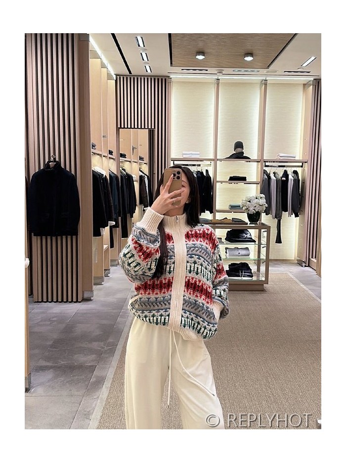 로로피아나 페어아일 자카드 지퍼 가디건 [매장가 370만원대] > 가디건