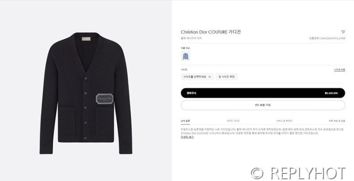 디올 모노그램 자수 캐시미어 가디건(남여공용) 2COLOR > 디올