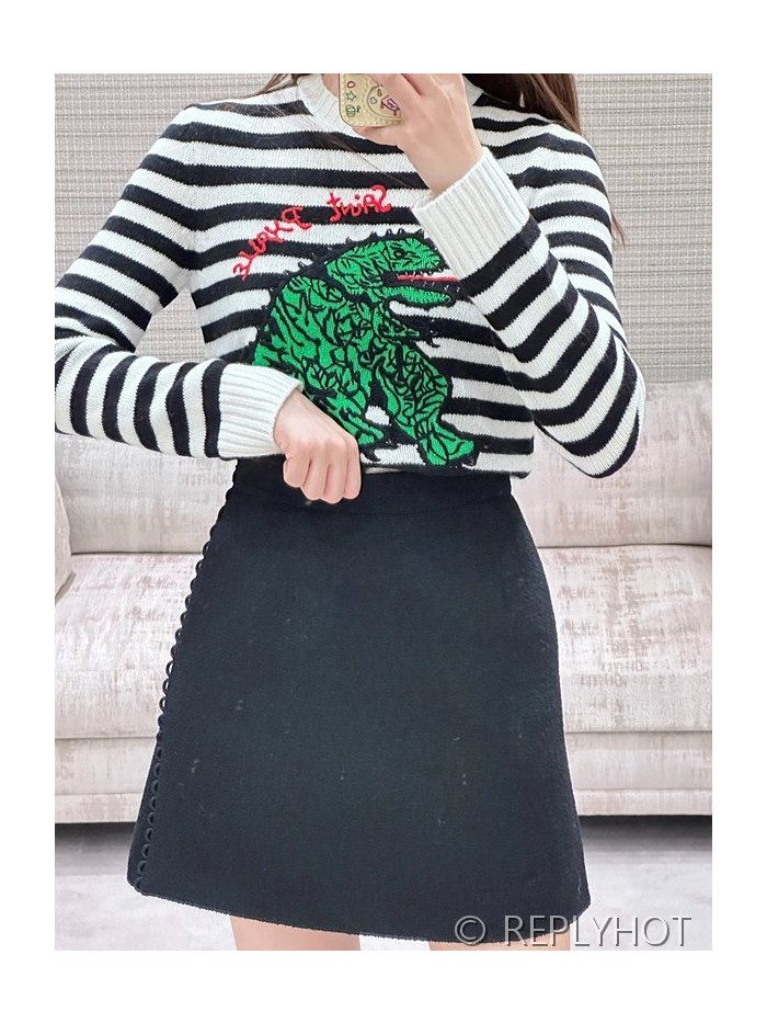 디올 공룡 자수 캐시미어 니트 2COLOR