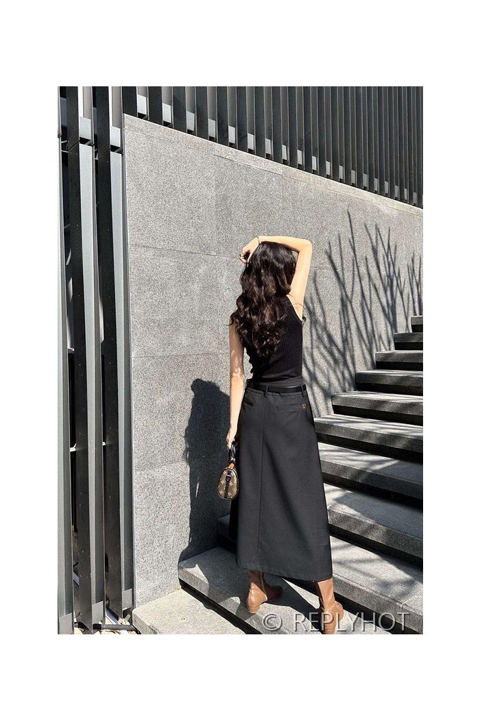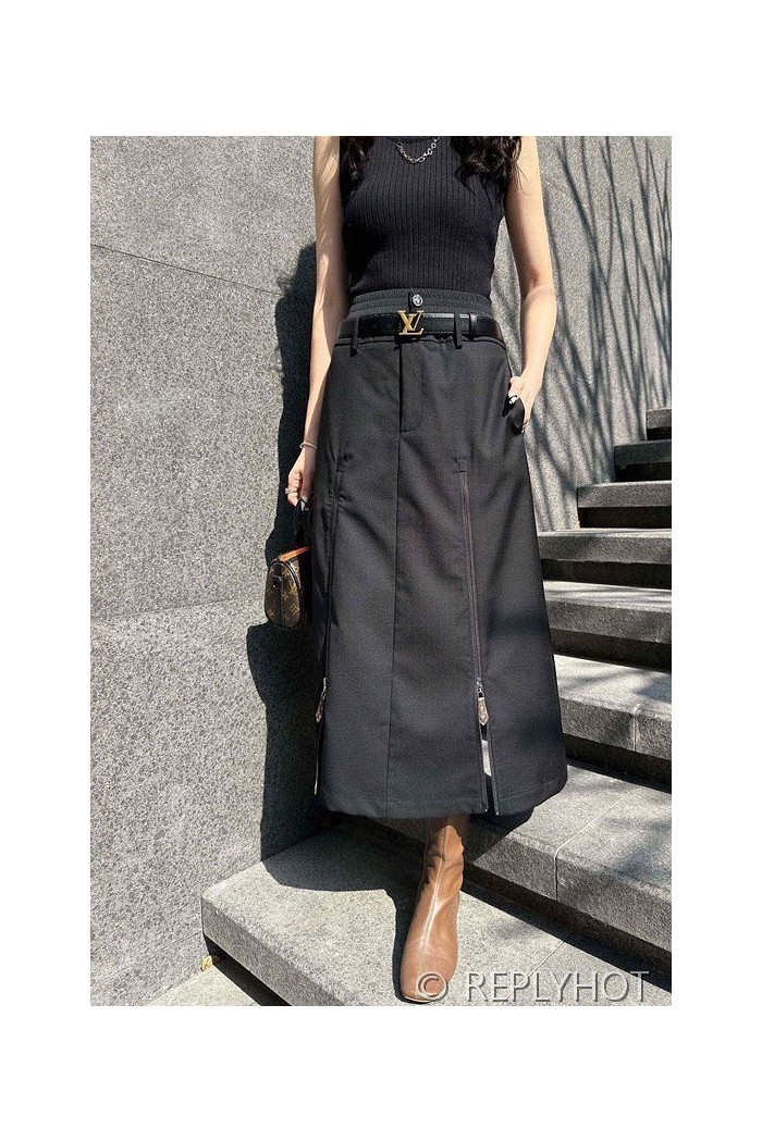 루이비통 벨트 더블 지퍼 슬림 롱 스커트