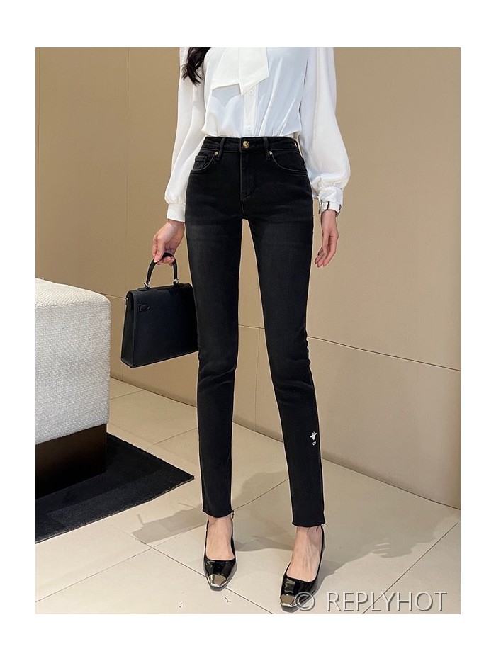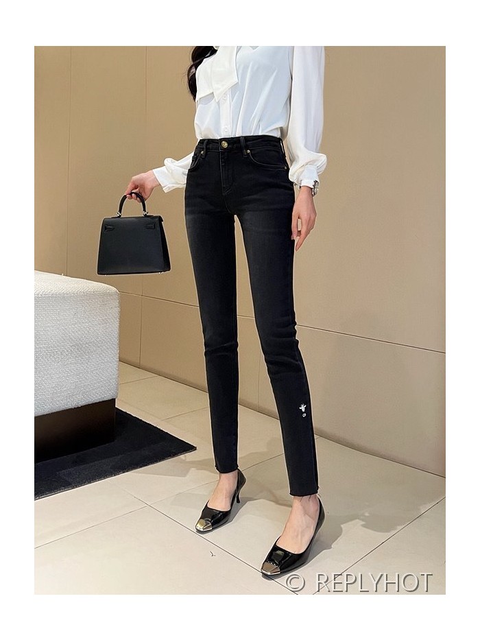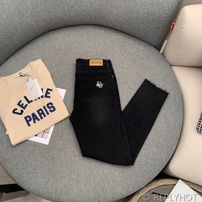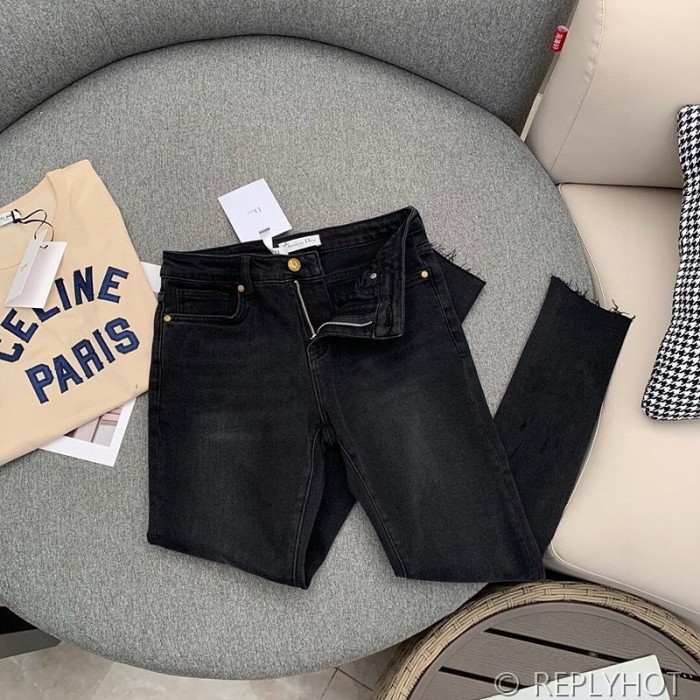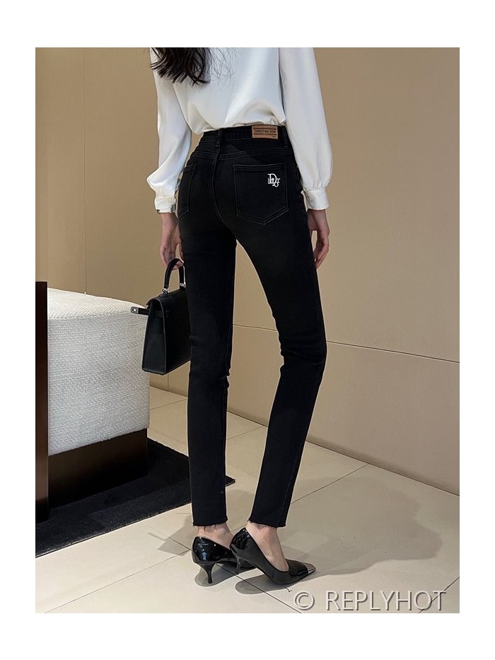 디올 하이웨이스트 슬림 워싱 나인포인트 블랙진