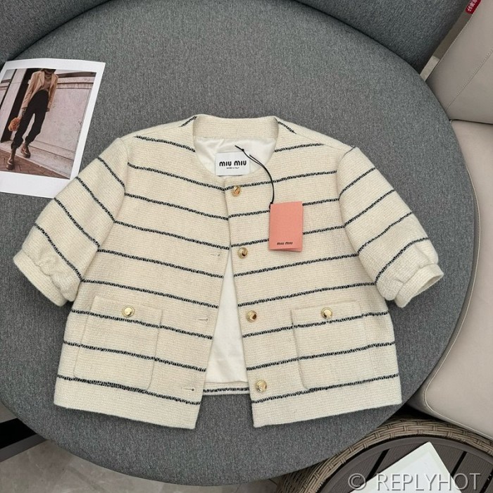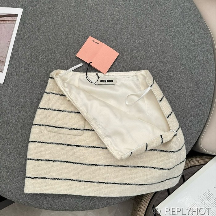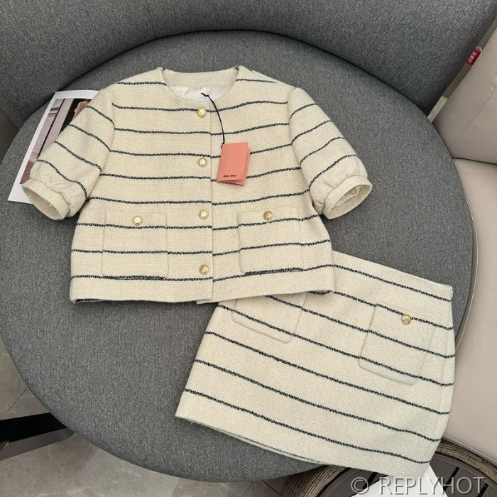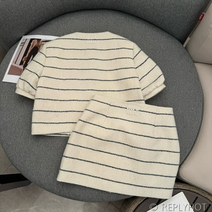 미우미우 스트라이프 울 트위드 투피스