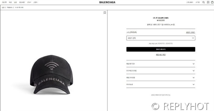 발렌시아가 블랙 및 그레이 코튼 드릴 소재의 Lo_ve 캡 [매장가 66만원대] > 발렌시아가