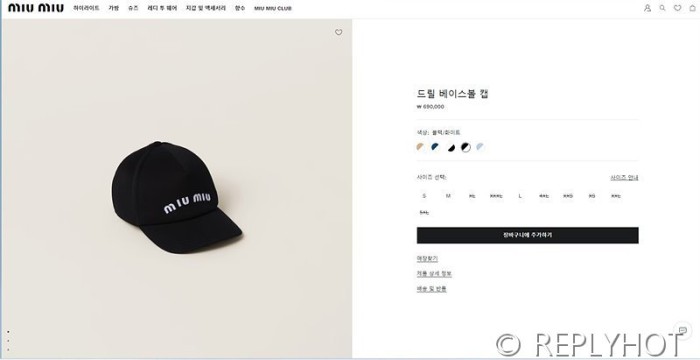 미우미우 드릴 베이스볼 캡 2color [매장가 69만원대]