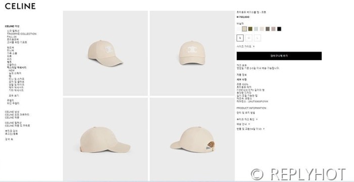 셀린느 트리옹프 베이스볼 캡 [매장가 79만원대] > 셀린느