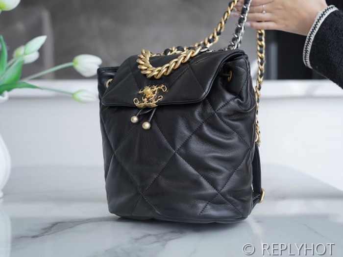 • [하이엔드급] 샤넬 19 백팩 램스킨 골드메탈 블랙 [매장가 1000만원대]