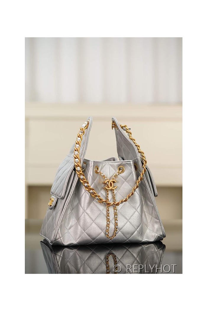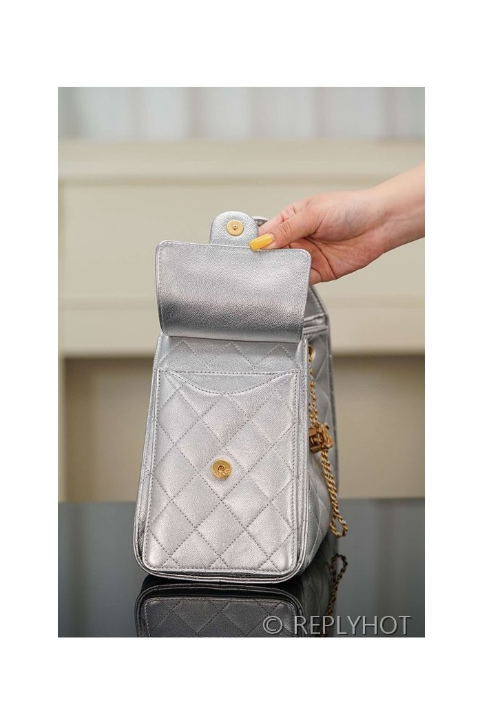 [하이엔드급] 샤넬 25백 스몰 메탈릭 그레인드 카프스킨 골드메탈 실버 [매장가 1000만원대]