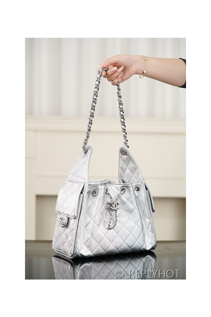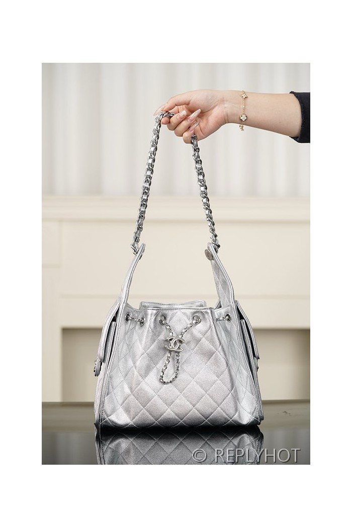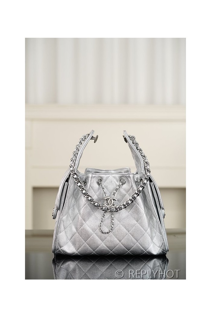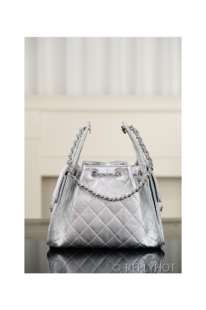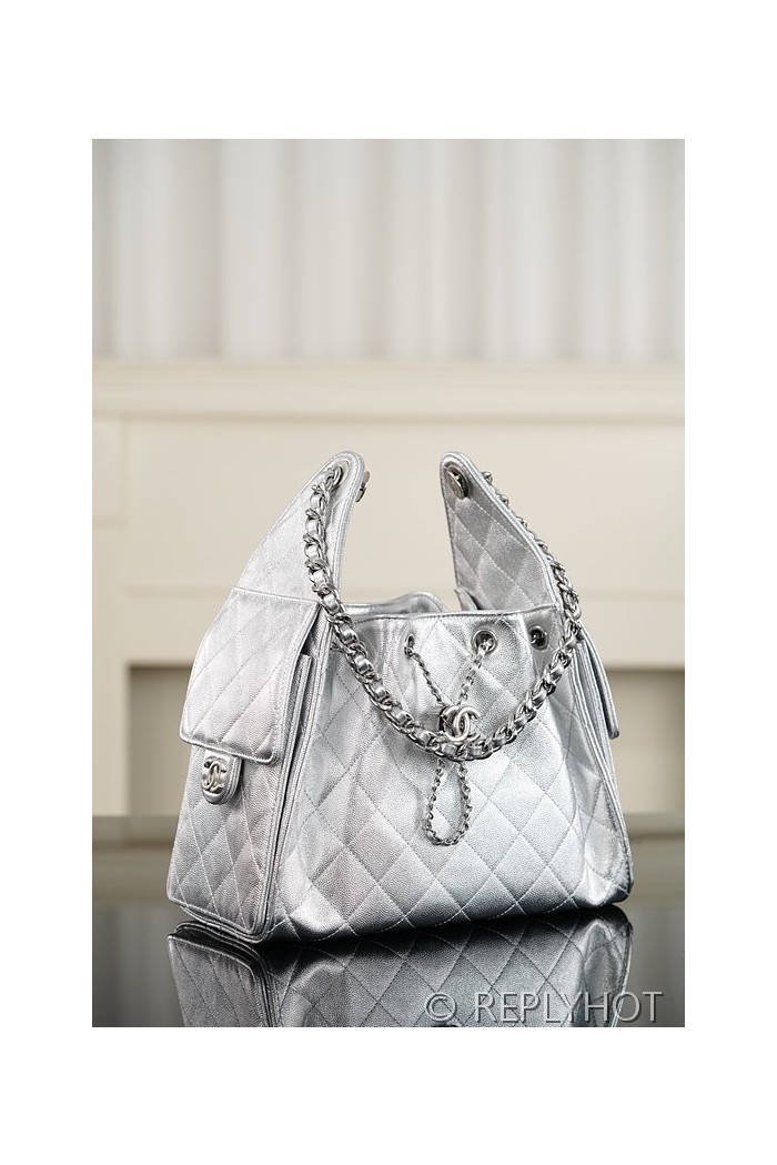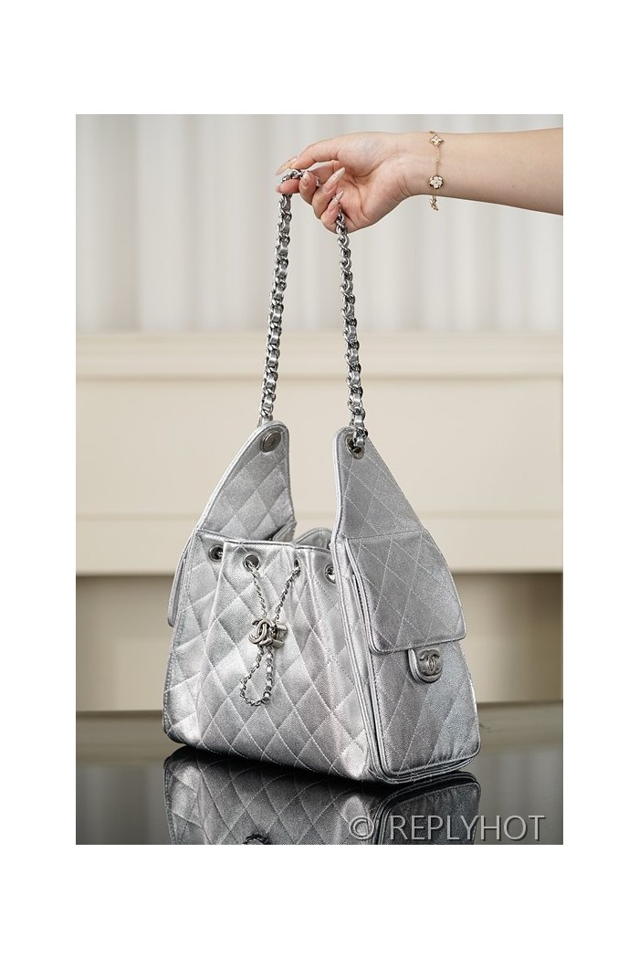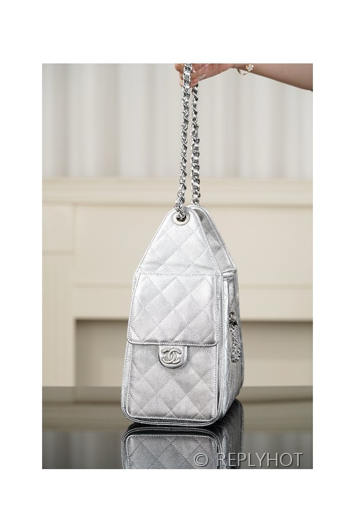 [하이엔드급] 샤넬 25백 스몰 메탈릭 그레인드 카프스킨, 실버 메탈 실버 [매장가 1000만원대]