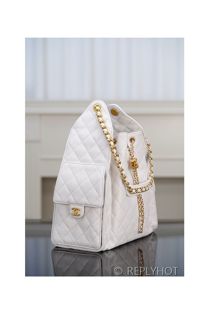 [하이엔드급] 샤넬 25백 미디엄 그레인드 카프스킨 골드메탈 화이트 [매장가 1200만원대]
