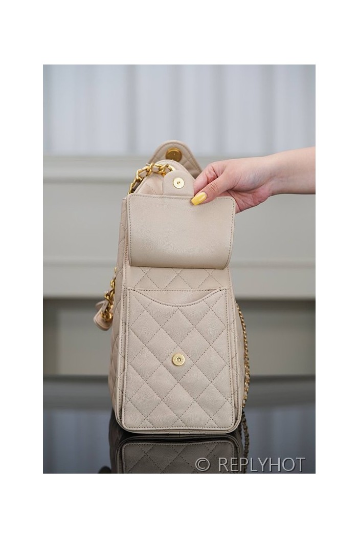 [하이엔드급] 샤넬 25백 미디엄 그레인드 카프스킨 골드메탈 베이지 [매장가 1200만원대]