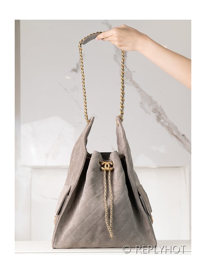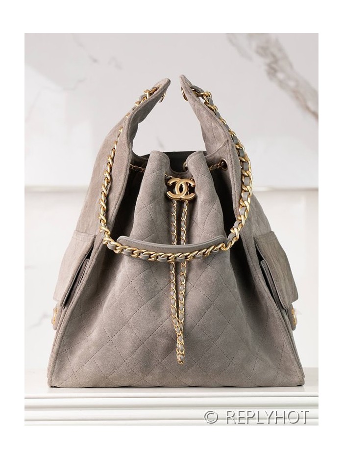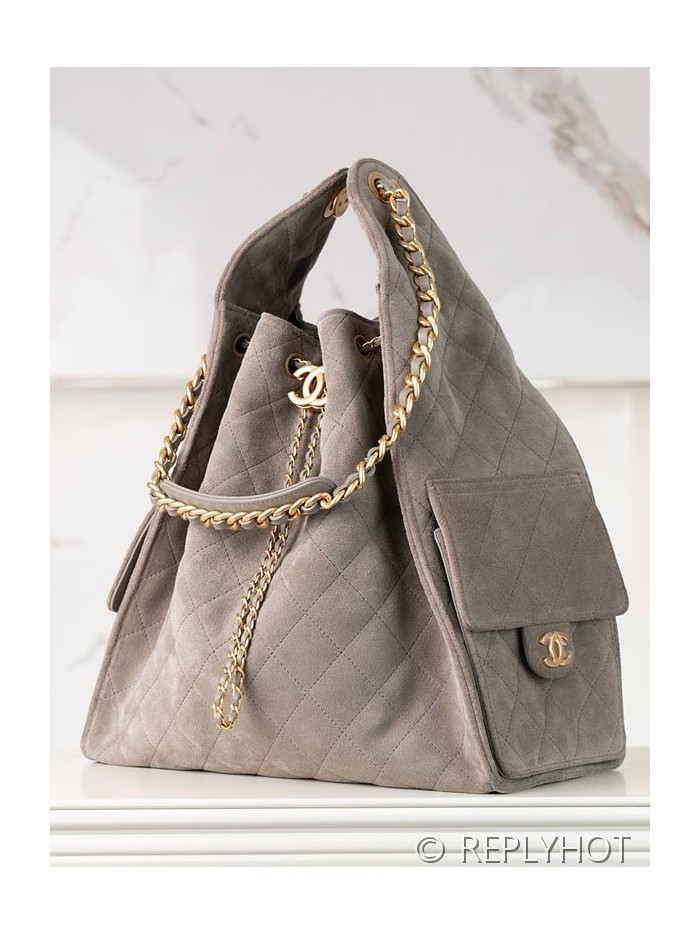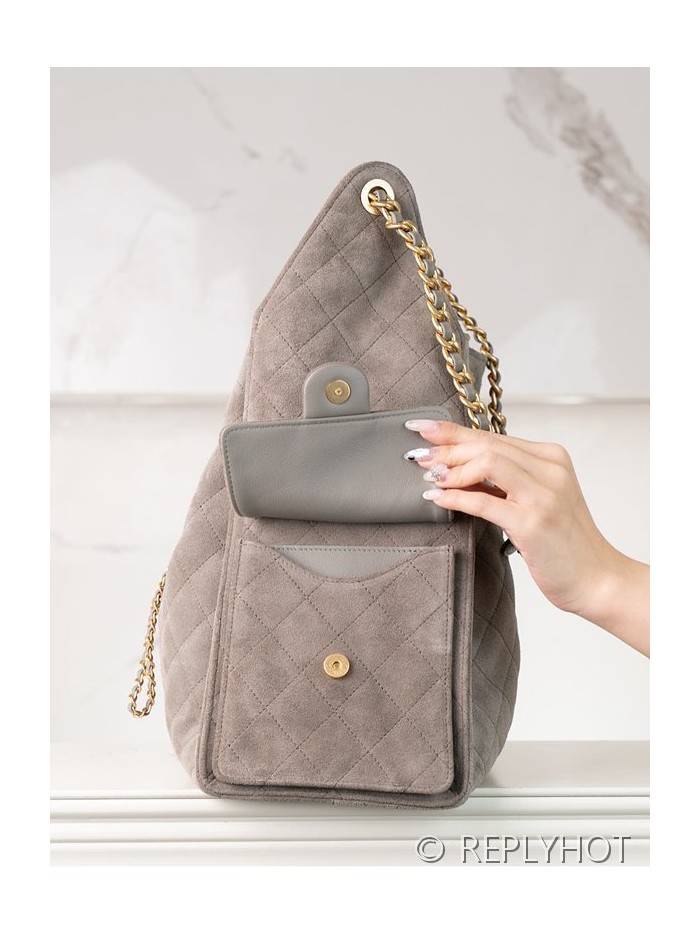 [하이엔드급] 샤넬 25백 미디엄 스웨이드 카프스킨 골드메탈 그레이 [매장가 1200만원대] > CHANEL
