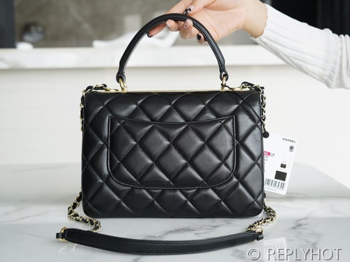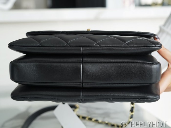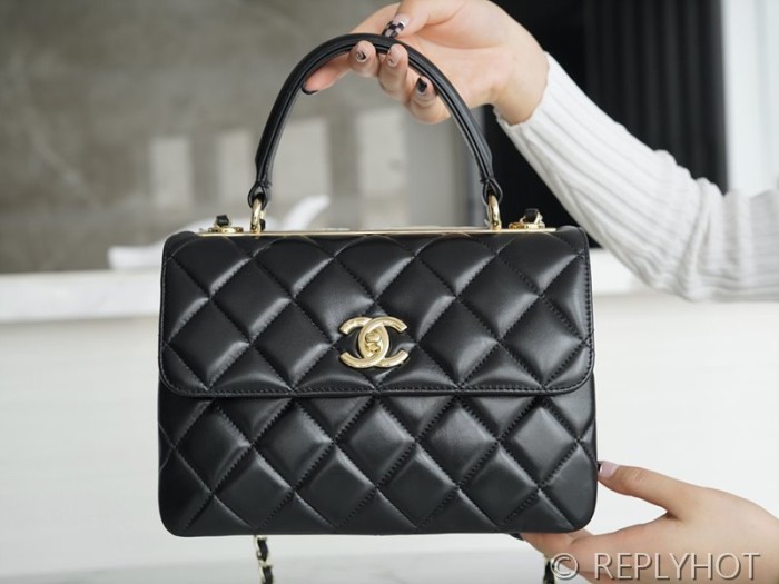 [하이엔드급] 샤넬 트랜드 CC 탑핸들 스몰 플랩백 램스킨 골드메탈 블랙 [매장가 1000만원대]