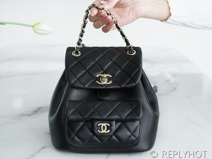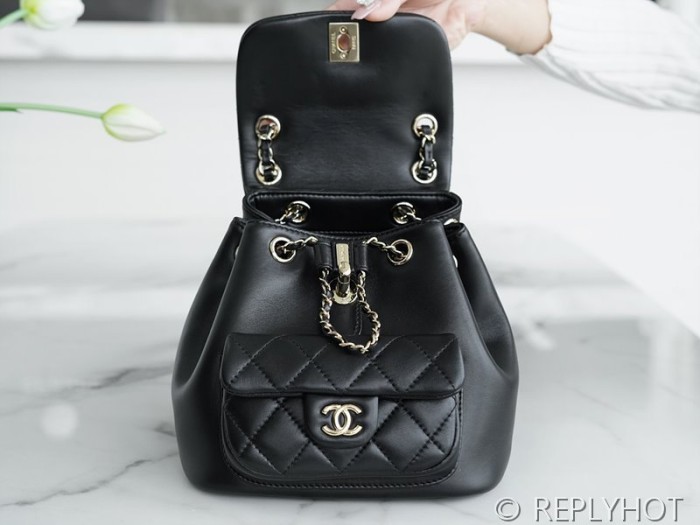 [하이엔드급] 샤넬 22 크루즈 듀마 백팩 램스킨 골드메탈 블랙 [매장가 1000만원대]