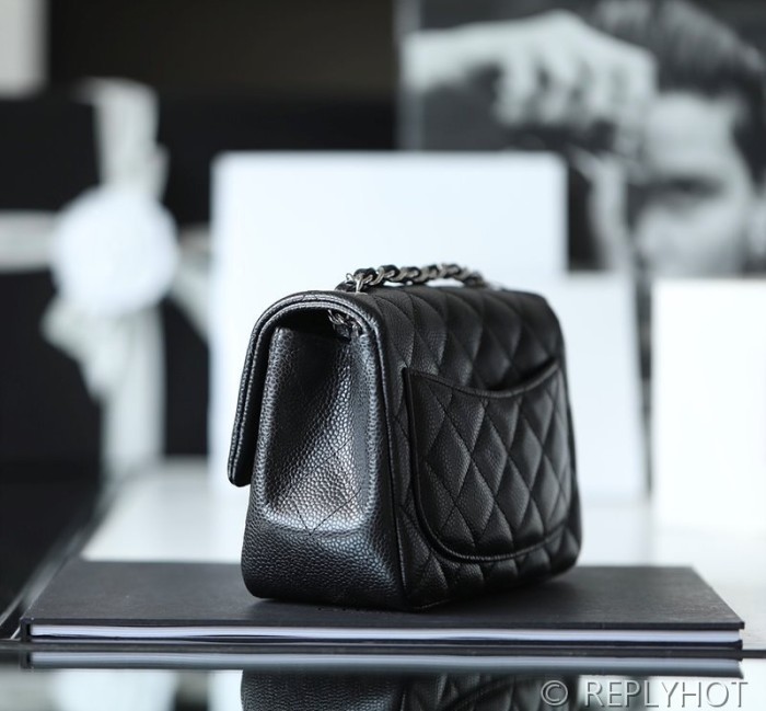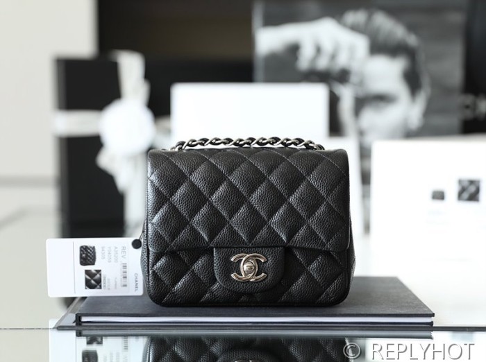 [하이엔드급] 샤넬 클래식 쁘띠삭 미니 플랩백 카프스킨 실버메탈 블랙 [매장가 900만원대]