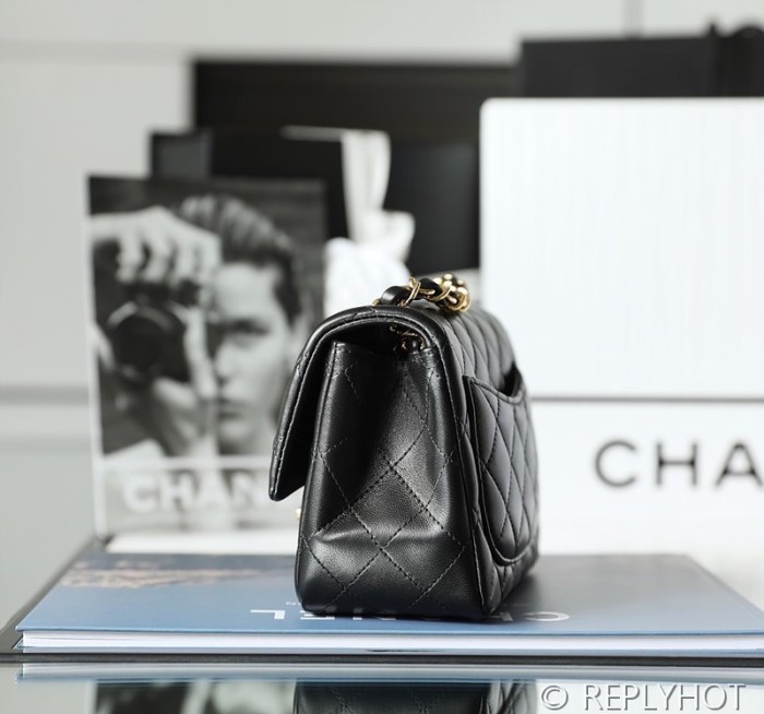 [하이엔드급] 샤넬 클래식 쁘띠삭 미니 플랩백 램스킨 골드메탈 블랙 [매장가 900만원대]