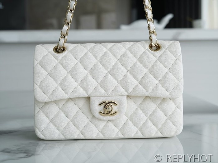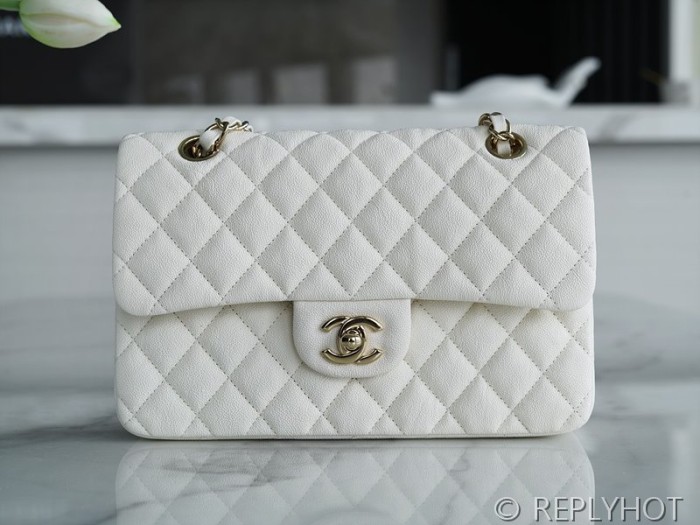 [하이엔드급] 샤넬 클래식 스몰 카프스킨 골드메탈 화이트 [매장가 1475만원대]