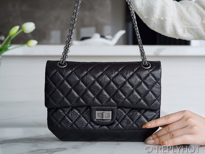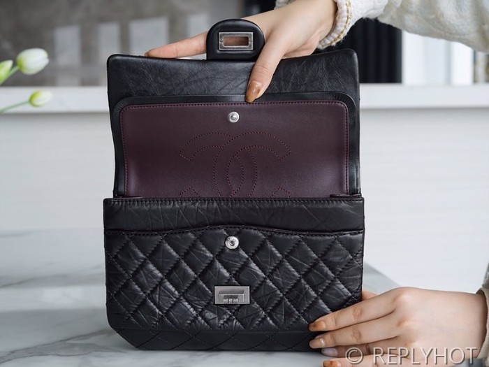• [하이엔드급] 샤넬 2.55 미디엄 플랩백 카프스킨 실버메탈 블랙 [매장가 1450만원대]