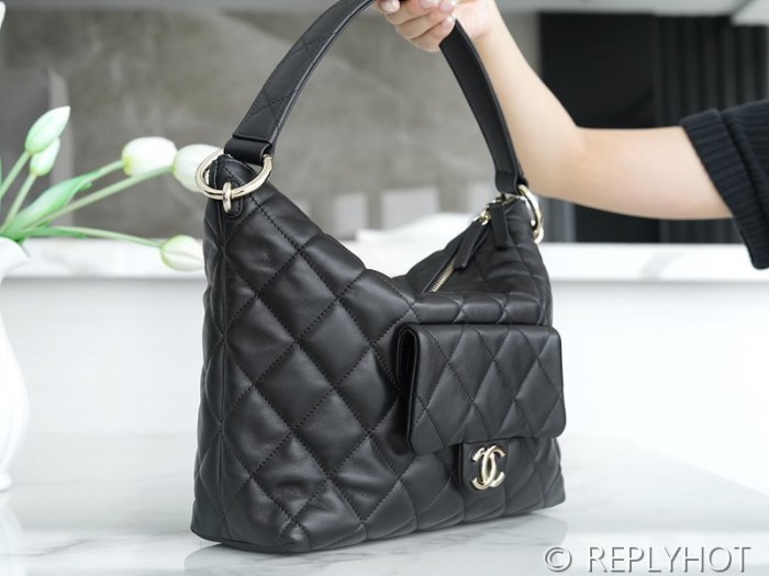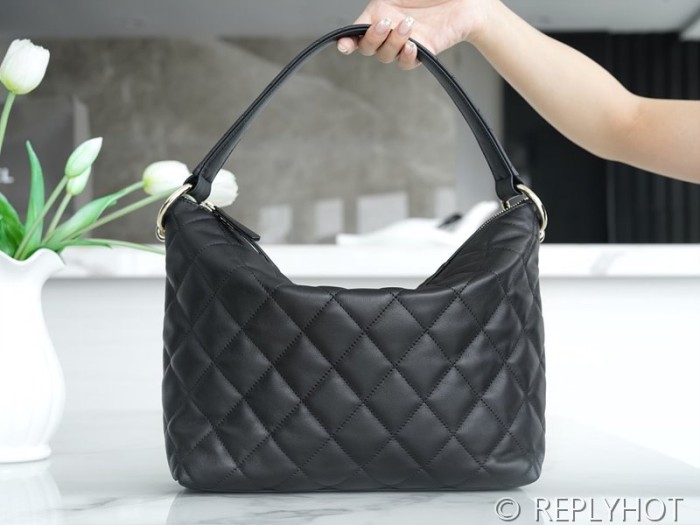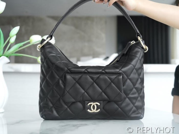• [하이엔드급] 샤넬 맥시 호보백 카프스킨 골드메탈 블랙 [매장가 904만원대]