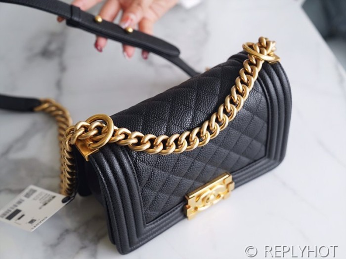[하이엔드급] 샤넬 스몰 보이백 카프스킨 골드메탈 블랙 [매장가 900만원대] > CHANEL