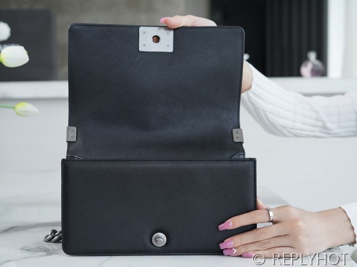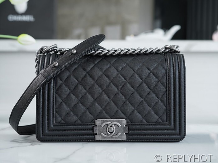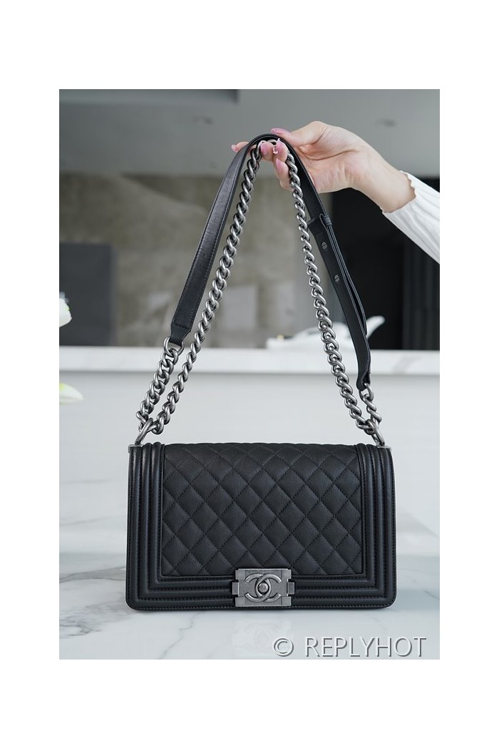 • [하이엔드급] 샤넬 미디엄 보이백 캐비어 실버메탈 블랙 [매장가 1000만원대]