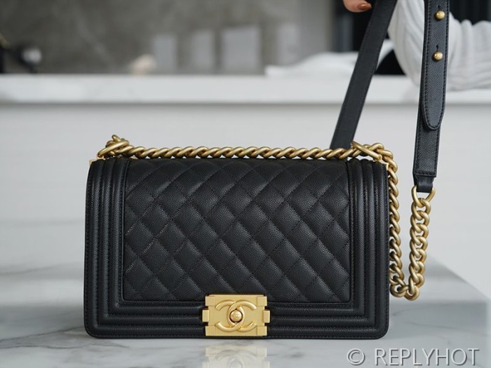 [하이엔드급] 샤넬 미디엄 보이백 캐비어 골드메탈 블랙 [매장가 1000만원대] > CHANEL