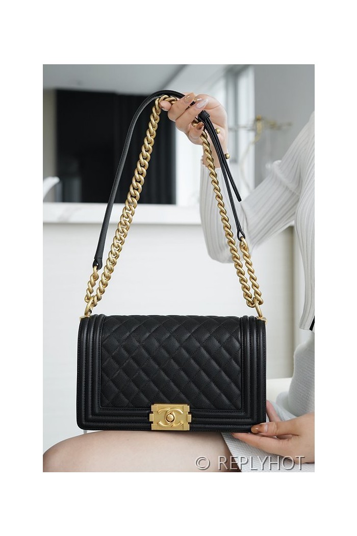• [하이엔드급] 샤넬 미디엄 보이백 캐비어 골드메탈 블랙 [매장가 1000만원대]