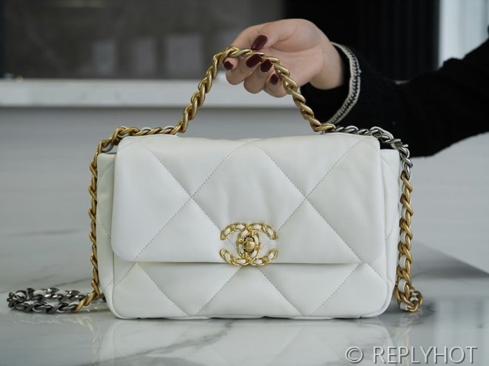 [하이엔드급] 샤넬 19 핸드백 램스킨 실버&골드메탈 화이트 [매장가 1000만원대]