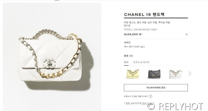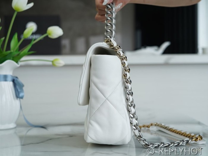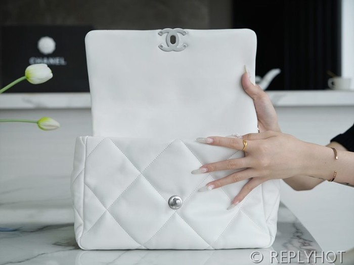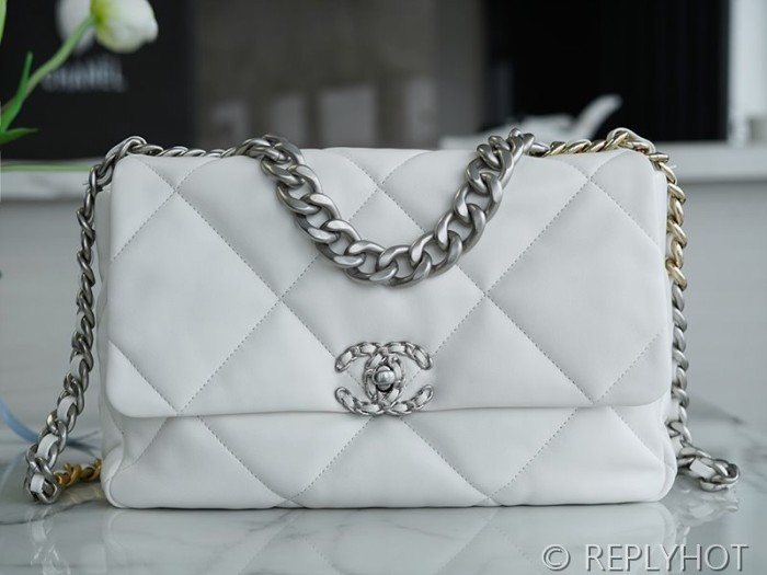 [하이엔드급] 샤넬 19 핸드백 램스킨 실버&골드메탈 화이트 [매장가 1000만원대]