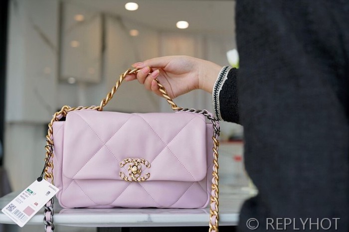 [하이엔드급] 샤넬 19 핸드백 램스킨 실버&골드메탈 핑크 [매장가 1000만원대]
