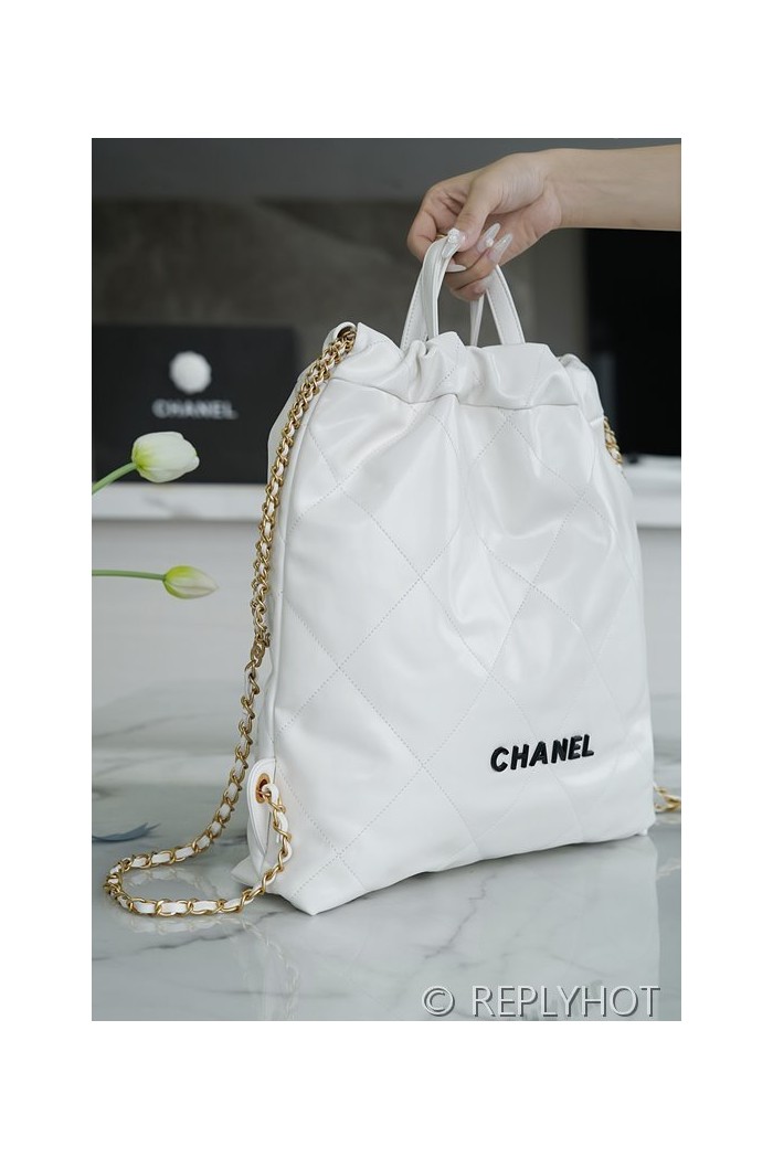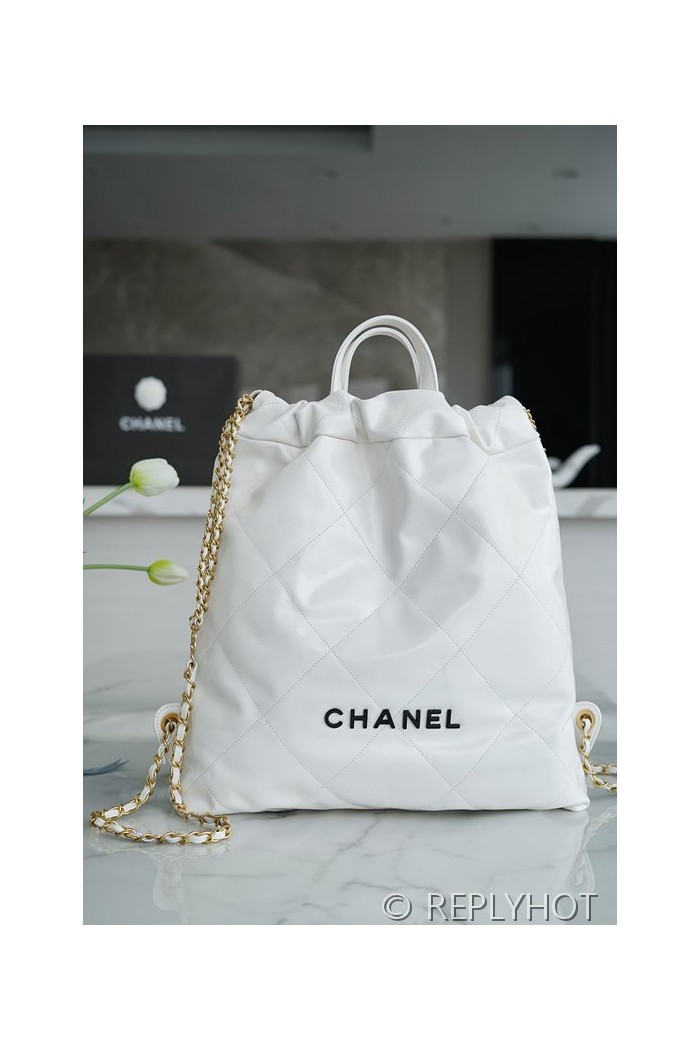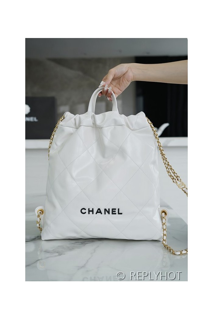 • [하이엔드급] 샤넬 22 라지 백팩 카프스킨 블랙&골드메탈 화이트 [매장가 1000만원대]