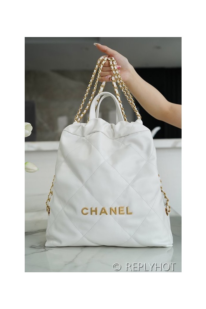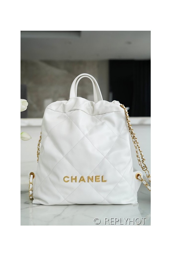 • [하이엔드급] 샤넬 22 백팩 카프스킨 골드메탈 화이트 [매장가 800만원대]
