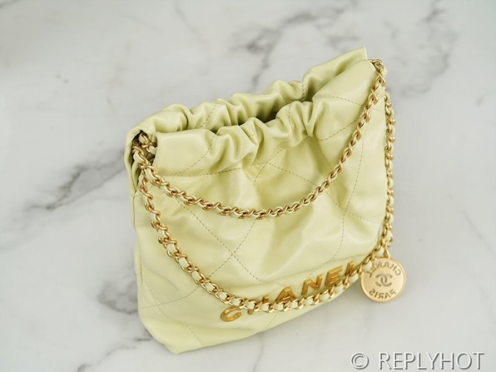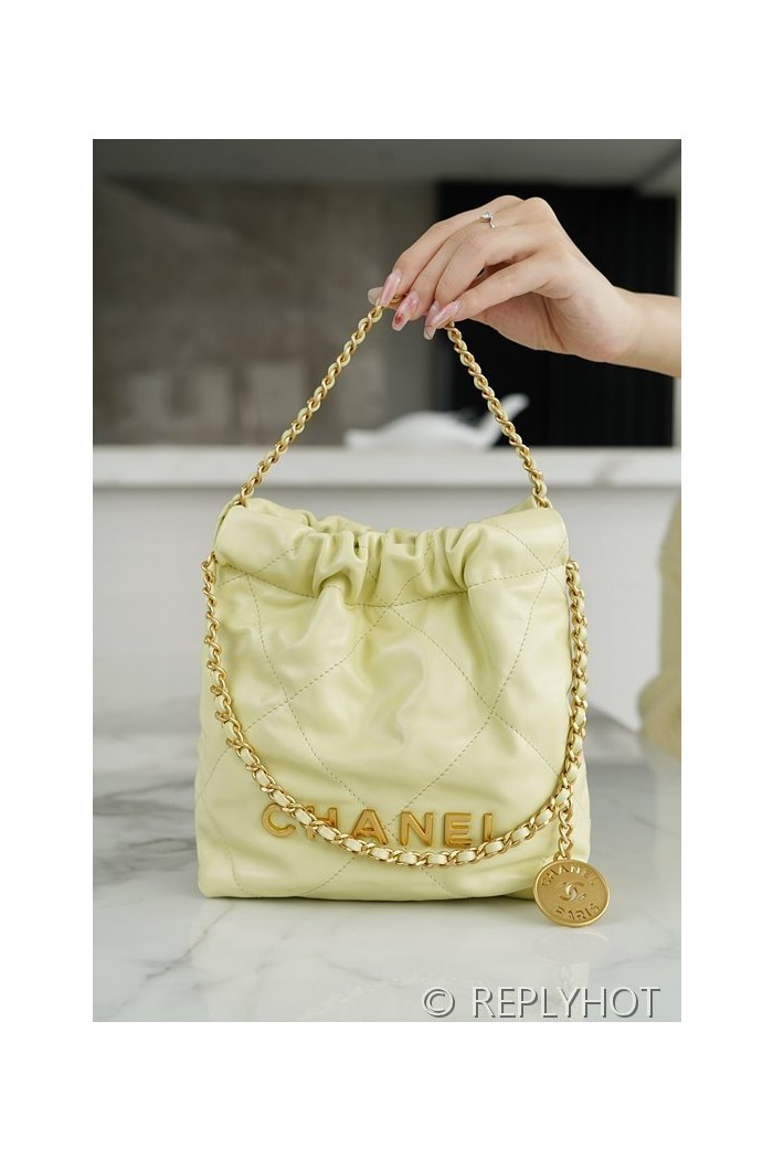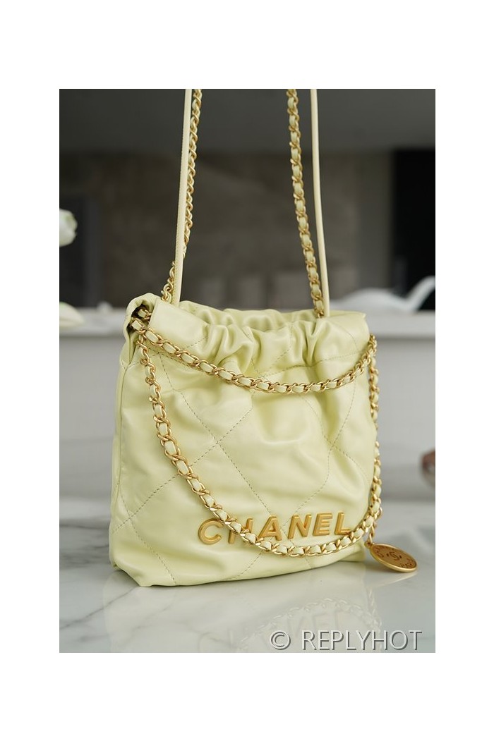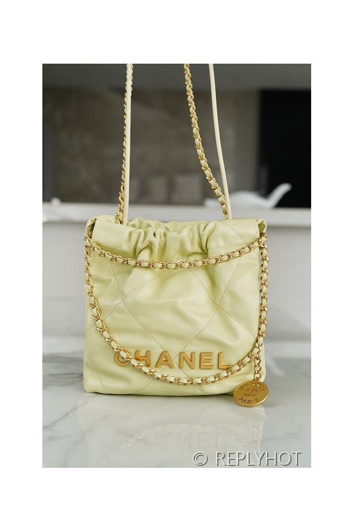 [하이엔드급] 샤넬 22 미니 핸드백 카프스킨 골드메탈 옐로우 [매장가 900만원대]