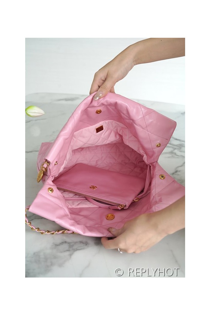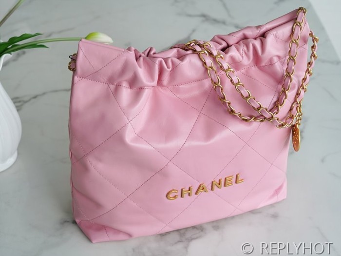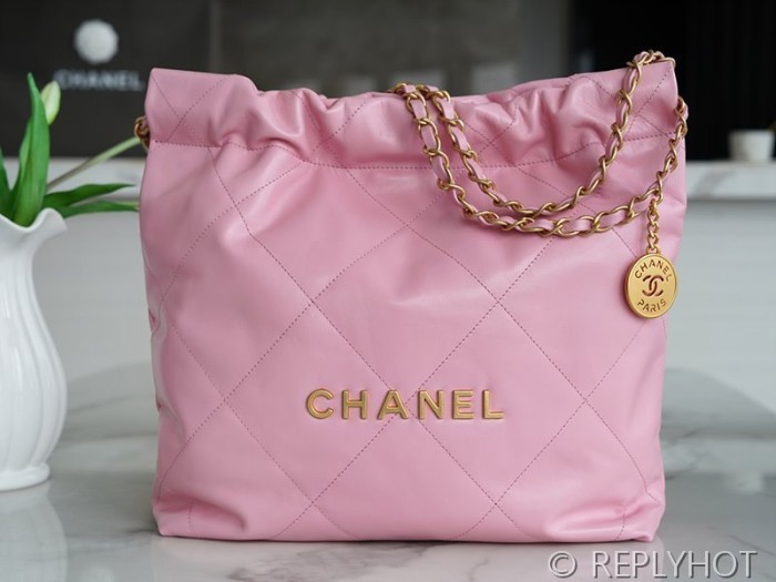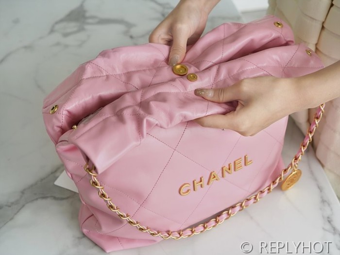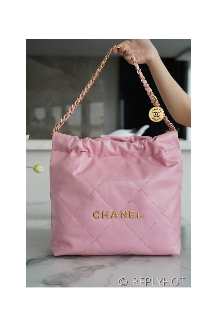 [하이엔드급] 샤넬 22 스몰 핸드백 카프스킨 골드메탈 코랄핑크 [매장가 1000만원대]