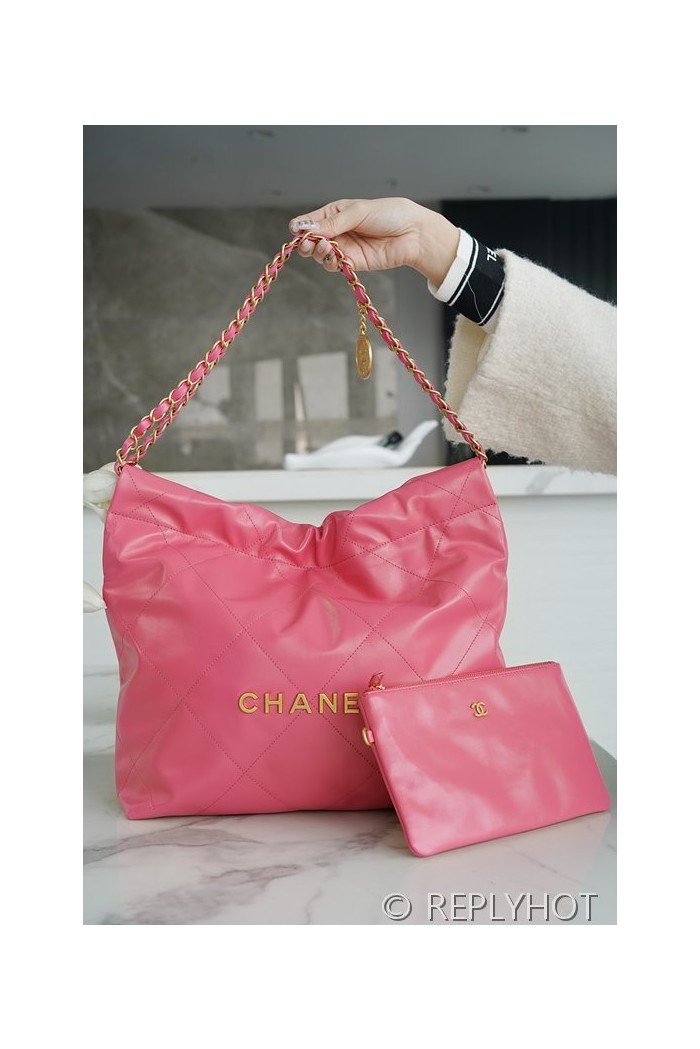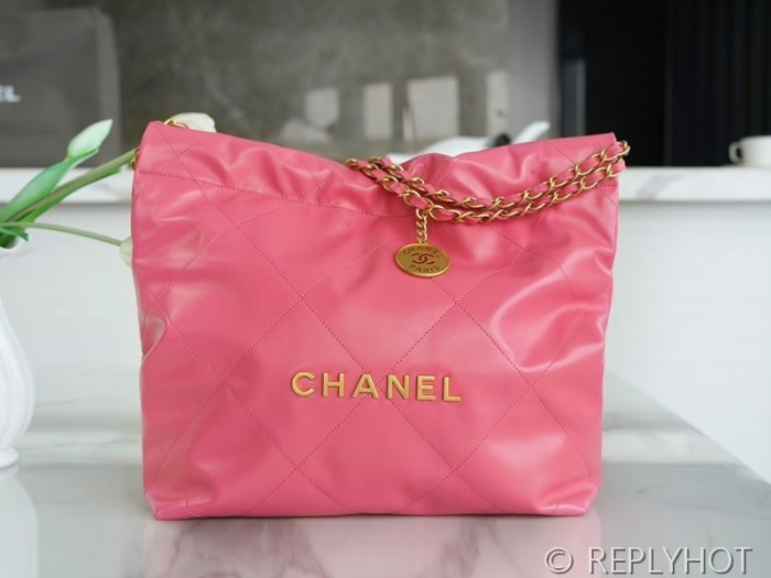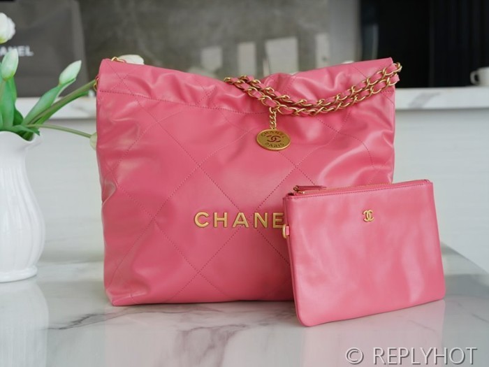 [하이엔드급] 샤넬 22 스몰 핸드백 카프스킨 골드메탈 핑크 [매장가 1000만원대]