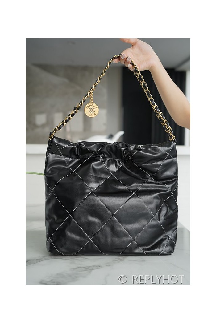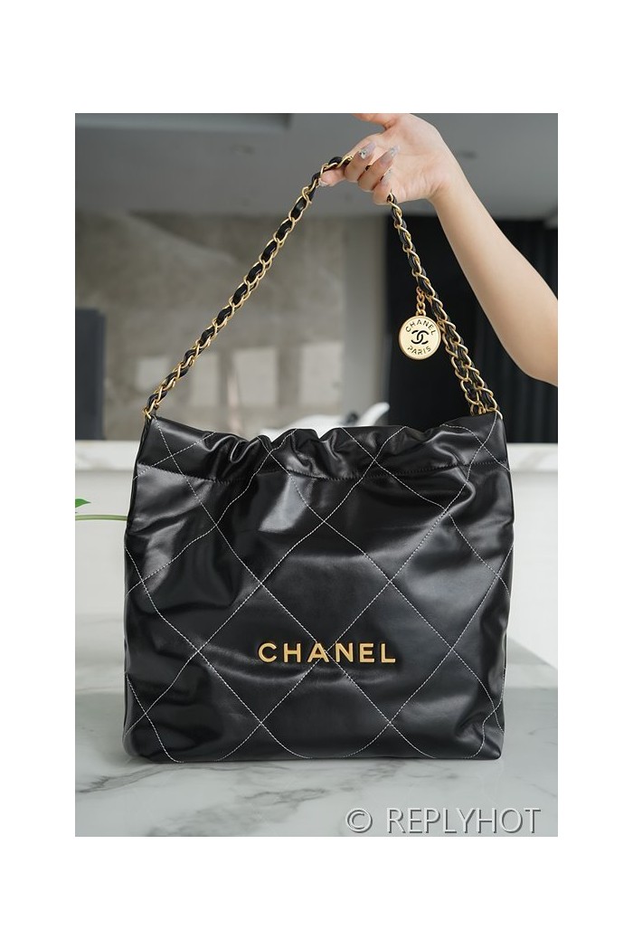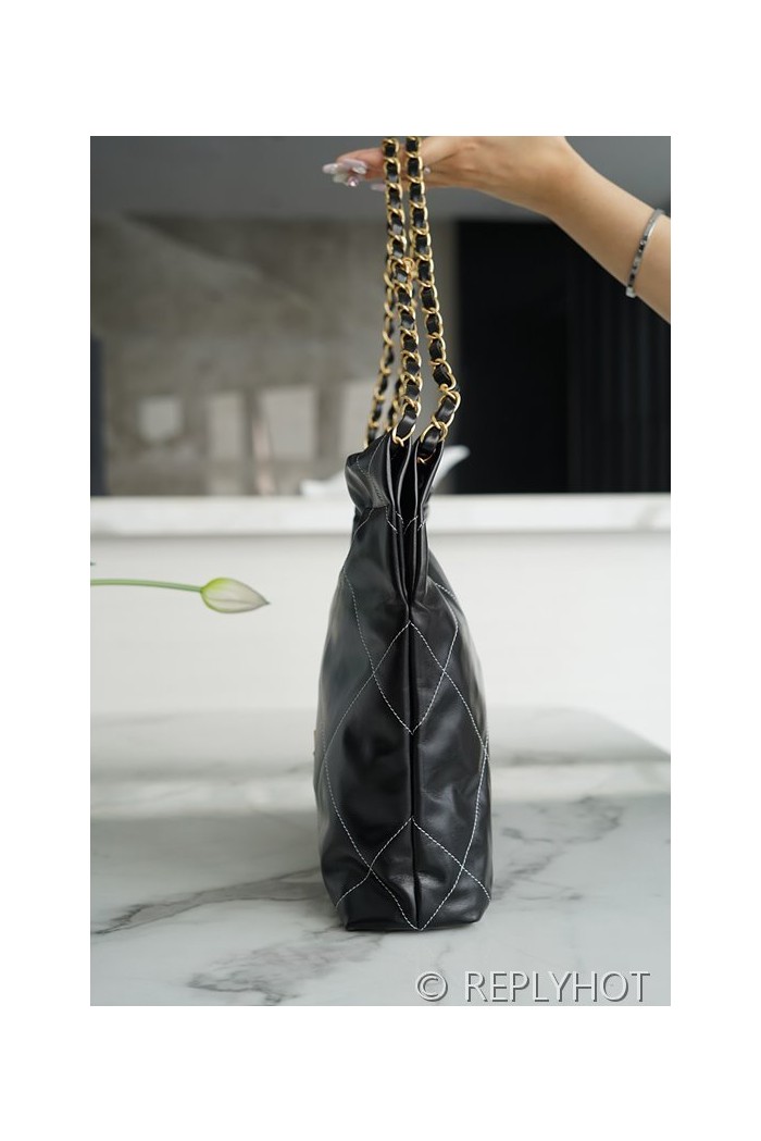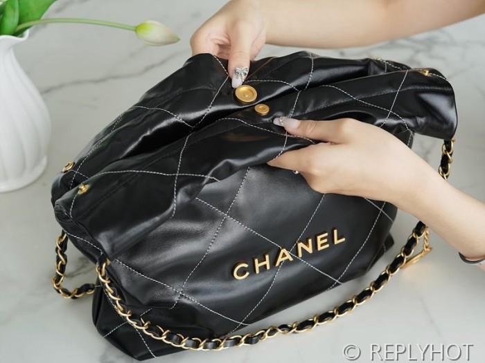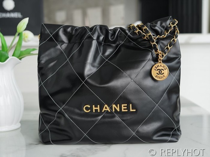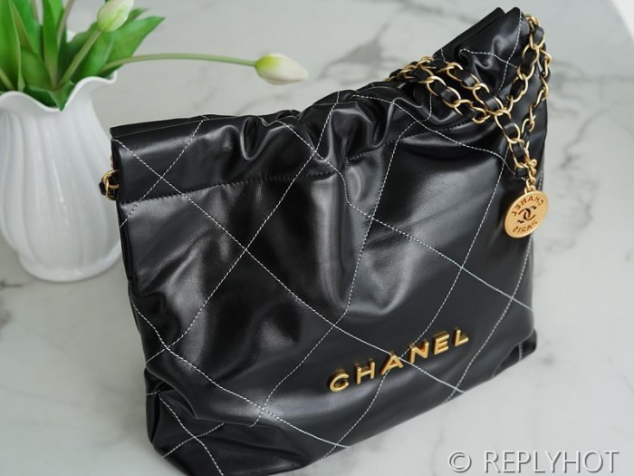 [하이엔드급] 샤넬 22 스몰 핸드백 카프스킨 골드메탈 화이트 스티치 블랙 [매장가 1000만원대]