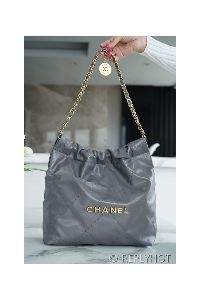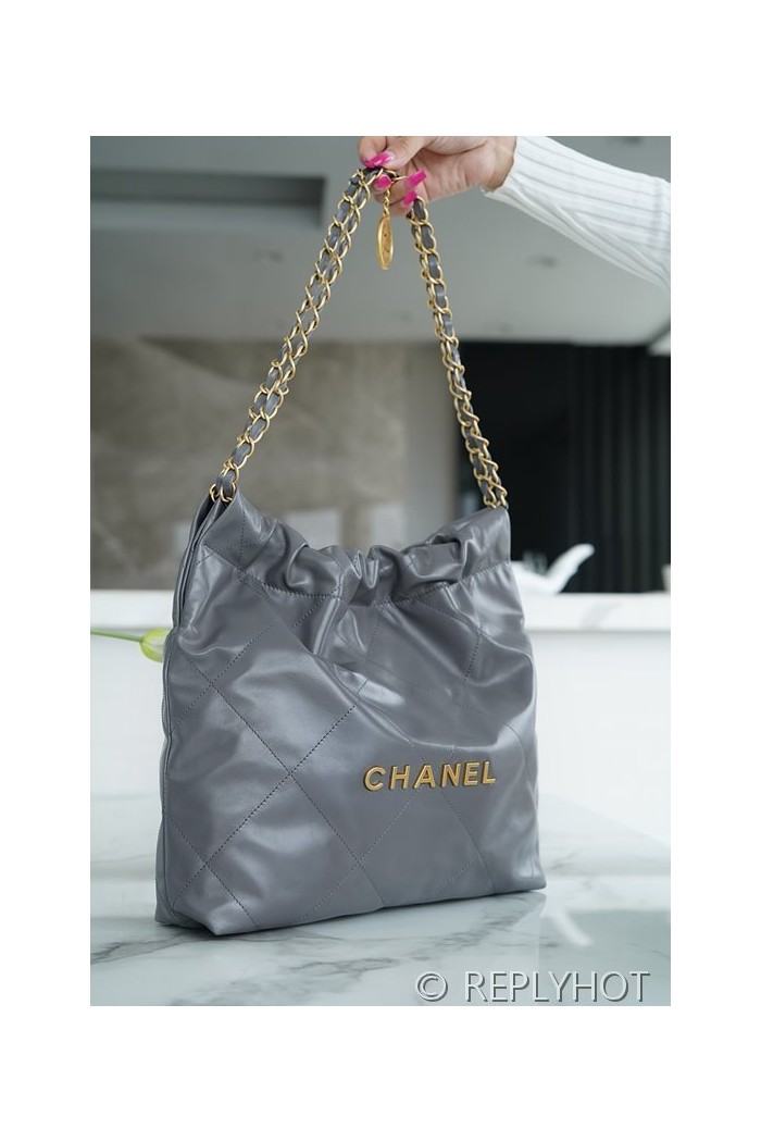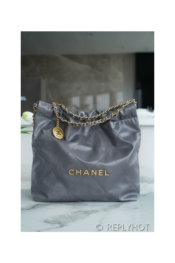 [하이엔드급] 샤넬 22 스몰 핸드백 카프스킨 골드메탈 그레이 [매장가 1000만원대]